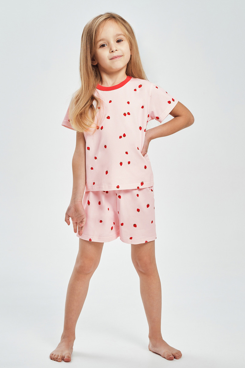 Піжама для дівчаток MAIA 3560 від TARO (розміри 92–116) – це чарівний та зручний варіант для дівчаток, які цінують комфорт сну та барвистий, дитячий дизайн. Виготовлена зі 100% високоякісної бавовни, вона м’яка, дихаюча та ніжна до чутливої шкіри дитини. Піжама складається з футболки з короткими рукавами, прикрашеної веселим принтом з полуницею, що надає комплекту дівчачого шарму. Комплект включає короткі шорти, ідеальні для теплих ночей та літнього відпочинку. Легкий матеріал забезпечує свободу рухів та комфорт протягом усієї ночі. Піжама упакована в практичний поліетиленовий пакет, що робить її чудовою ідеєю для подарунка.