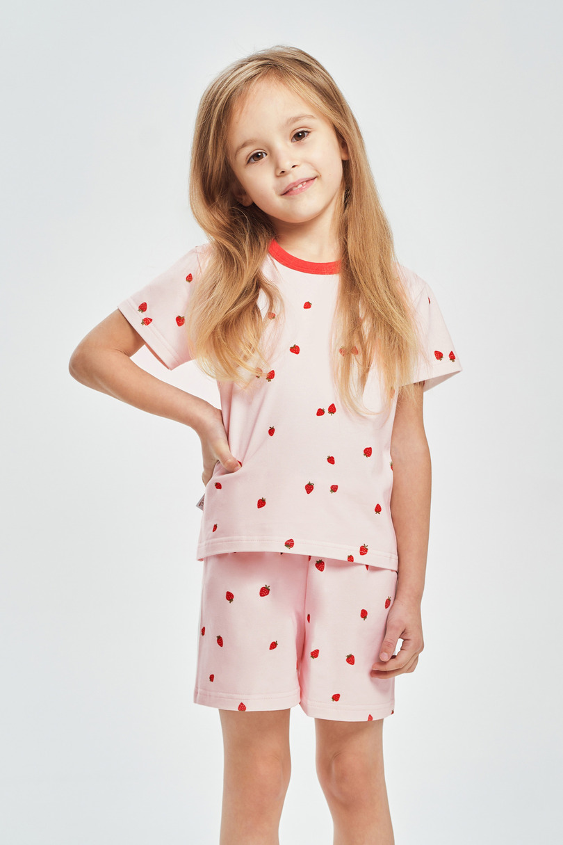 Піжама для дівчаток MAIA 3561 від TARO (розміри 122–140) – це чарівний та зручний варіант для дівчаток, які цінують комфорт сну та барвистий, дитячий дизайн. Виготовлена зі 100% високоякісної бавовни, вона м’яка, дихаюча та ніжна до чутливої шкіри дитини. Піжама складається з футболки з короткими рукавами, прикрашеної веселим принтом з полуницею, що надає комплекту дівчачого шарму. Комплект також включає короткі шорти, ідеальні для теплих ночей та літнього відпочинку. Легкий матеріал забезпечує свободу рухів та комфорт протягом усієї ночі. Піжама упакована в практичний поліетиленовий пакет, що робить її чудовою ідеєю для подарунка.