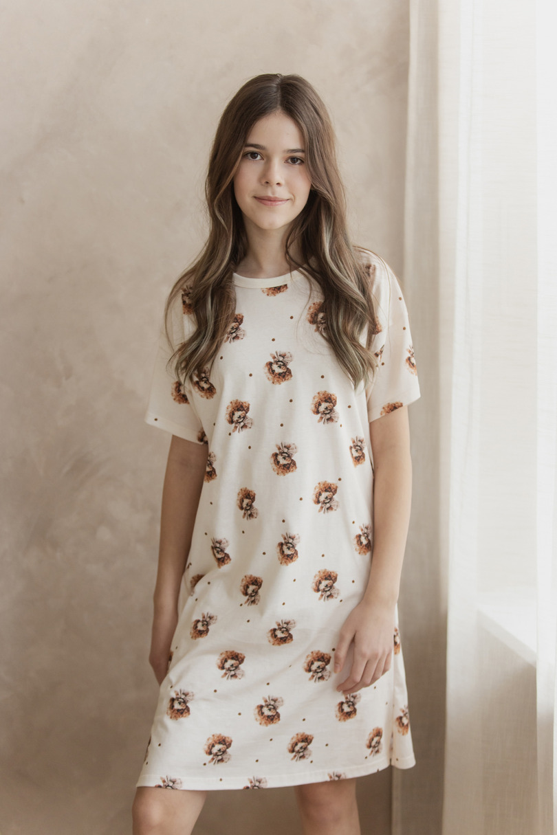 Нічна сорочка Coco 3592 для дівчаток від TARO — це зручна та чарівна нічна сорочка, створена для комфортного сну та відпочинку. Виготовлена з високоякісної м’якої бавовни, вона приємна на дотик, дихаюча та комфортна протягом усієї ночі. Короткі рукави та зручний крій до колін забезпечують свободу рухів та комфорт. Барвистий візерунок по всій довжині надає нічній сорочці дівочого шарму та грайливого характеру. Натуральний 100% бавовняний матеріал забезпечує гарну циркуляцію повітря та комфорт навіть у теплі ночі. Ця нічна сорочка ідеально підходить як зручний нічний одяг для дівчаток. Вона постачається в практичному поліетиленовому пакеті, що робить її ідеальним подарунком.