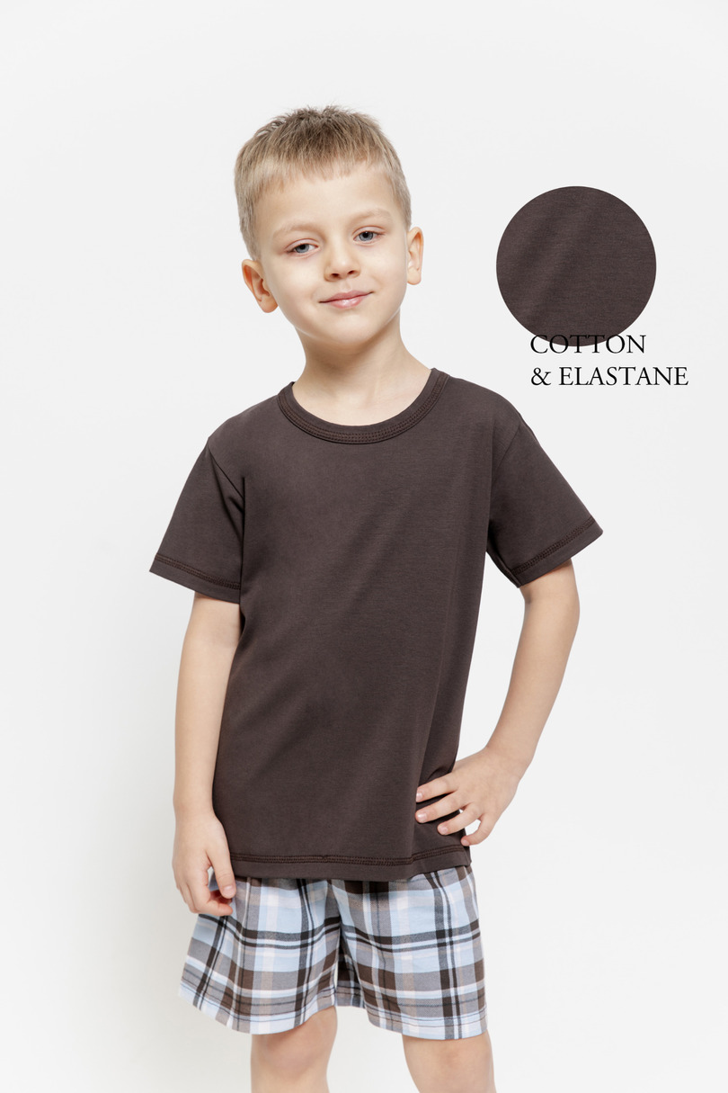 Піжама Marcello для хлопчика від TARO – це зручний та практичний комплект, розроблений для комфортного сну та відпочинку вдома. Комплект включає футболку з короткими рукавами та шорти з класичним візерунком у клітинку, що робить їх ідеальними для теплих вечорів. Однотонна футболка має класичний круглий виріз горловини та зручний прямий крій, що забезпечує свободу рухів. Матеріал, виготовлений з бавовни з додаванням еластану, м'який, дихаючий та еластичний, що забезпечує щільне прилягання та комфортне носіння. Шорти з модним візерунком у клітинку виготовлені з дихаючої бавовни. Еластичний пояс забезпечує гарну посадку та комфорт під час сну. Піжама TARO Marcello – чудовий вибір для хлопчиків, які цінують комфорт, натуральні матеріали та класичний стиль у своєму одязі для сну.