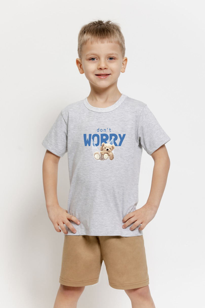 Піжама для хлопчика Ted від TARO – це зручний та практичний комплект, ідеальний для теплих вечорів. Комплект включає футболку з короткими рукавами та шорти, що забезпечує свободу рухів та комфорт під час сну та відпочинку вдома. Легка меланжева футболка має круглий виріз горловини та чарівний принт ведмедика з написом «Не хвилюйся», що надає піжамі дружнього та зручного для дитини відчуття. М’яка та дихаюча бавовна робить матеріал приємним на дотик до шкіри та забезпечує комфорт протягом усієї ночі. Контрастні шорти мають зручний крій та еластичний пояс, що забезпечує щільне прилягання та відсутність здавлення під час сну. Піжама TARO Ted – ідеальний вибір для хлопчиків, яким потрібен зручний, легкий та повітряний одяг для сну в теплі дні.