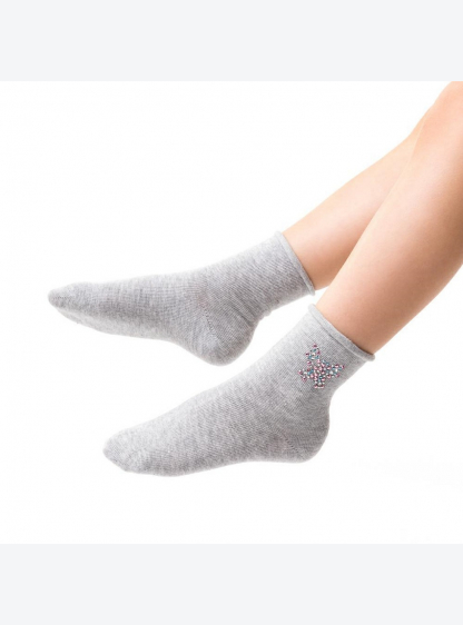 Однотонні бавовняні шкарпетки для дівчаток, прикрашені кришталевою аплікацією навколо щиколотки. Над..