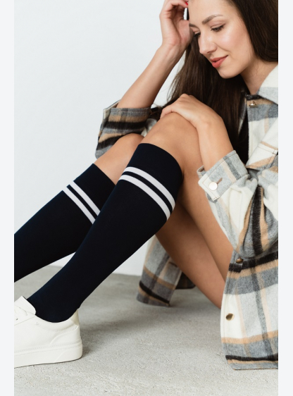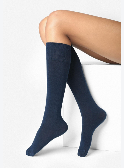 Бавовняні колінні шкарпетки з широкою не стискаючою гумкою. Склад: 70% бавовна, 25% поліамід, 5% ела..