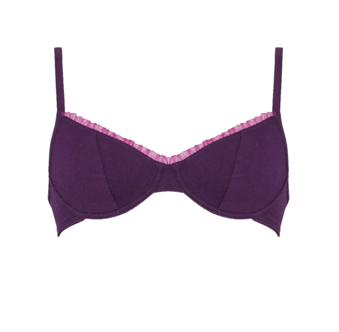 Зручний, м'який бюстгальтер на кісточках. Ніжна рюша додає нотку шарму. Склад: 95% бавовна, 5% лайкра.