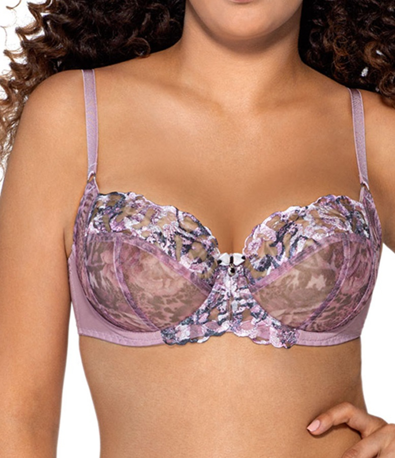 М'який бюстгальтер з візерункової сітки. Регульовані, незнімні плечові лямки. Модель добре збирає і підтримує бюст. Конструкція 1130. Склад: 88% поліамід, 8% бавовна, 4% еластан.