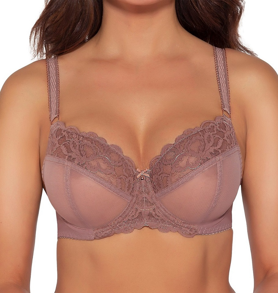 М'який бюстгальтер. Мереживні чашки, декоровані квітковим мереживом з мерехтливою ниткою. Миска з трьох частин, регульовані бретельки, не знімаються. Склад: 88% поліамід, 8% бавовна, 4% еластан.