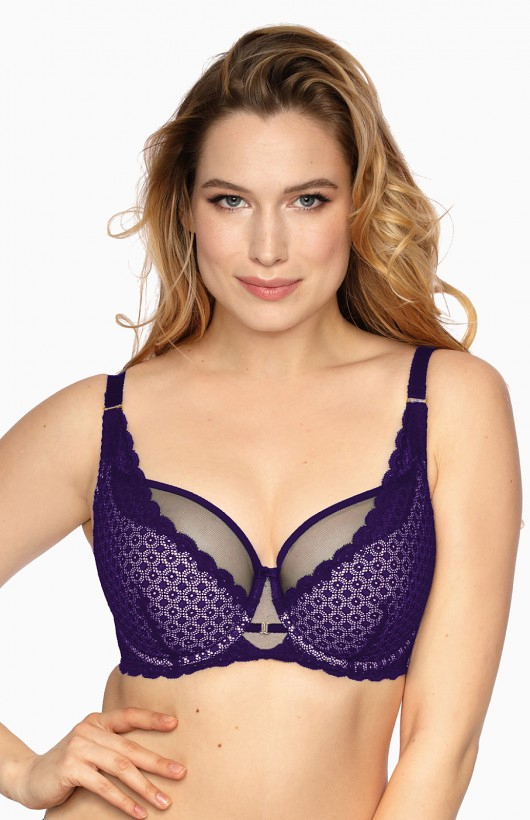 Жіночий напівбюстгальтер з оригінального мережива на підкладці з тканини. Верхня лінія оброблена ніжною сіткою та мереживом. Бортики з подвійного тюлю, посилені вертикальним китовим вусом. Невідстібаються бретелі. Склад: 51% поліамід, 25% поліестер, 1
