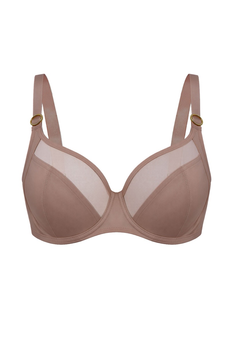 Модель Omena вирізняється мінімалістичним, елегантним стилем. Гладкі, ідеально контуровані чашечки чудово збирають та піднімають бюст, забезпечуючи природну, повну форму. Прозорі вставки у верхній частині додають легкості та ніжно підкреслюють декольте, створюючи ефект жіночої чуттєвості без перебільшення. Міцна конструкція гарантує: ✔ міцну підтримку та комфорт протягом усього дня ✔ ідеальне моделювання грудей ✔ комфорт навіть з більшими розмірами ✔ гладку поверхню, ідеально підходить під облягаючий одяг. Регульовані бретельки з елегантними золотими деталями підкреслюють сучасний, розкішний характер моделі. Модний, димчастий відтінок додає нотку вишуканості. 85% поліамід, 10% еластан, 5% поліестер