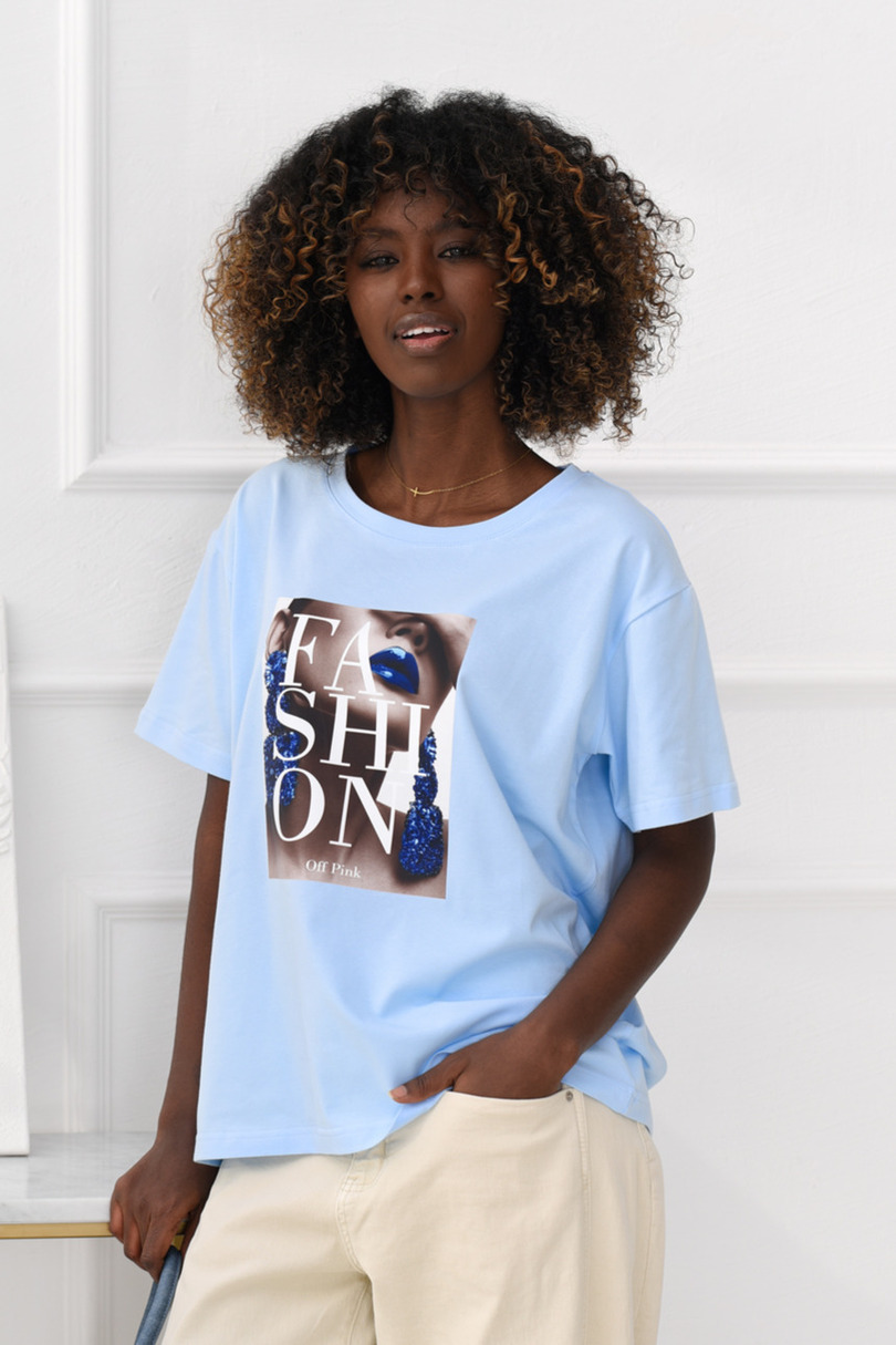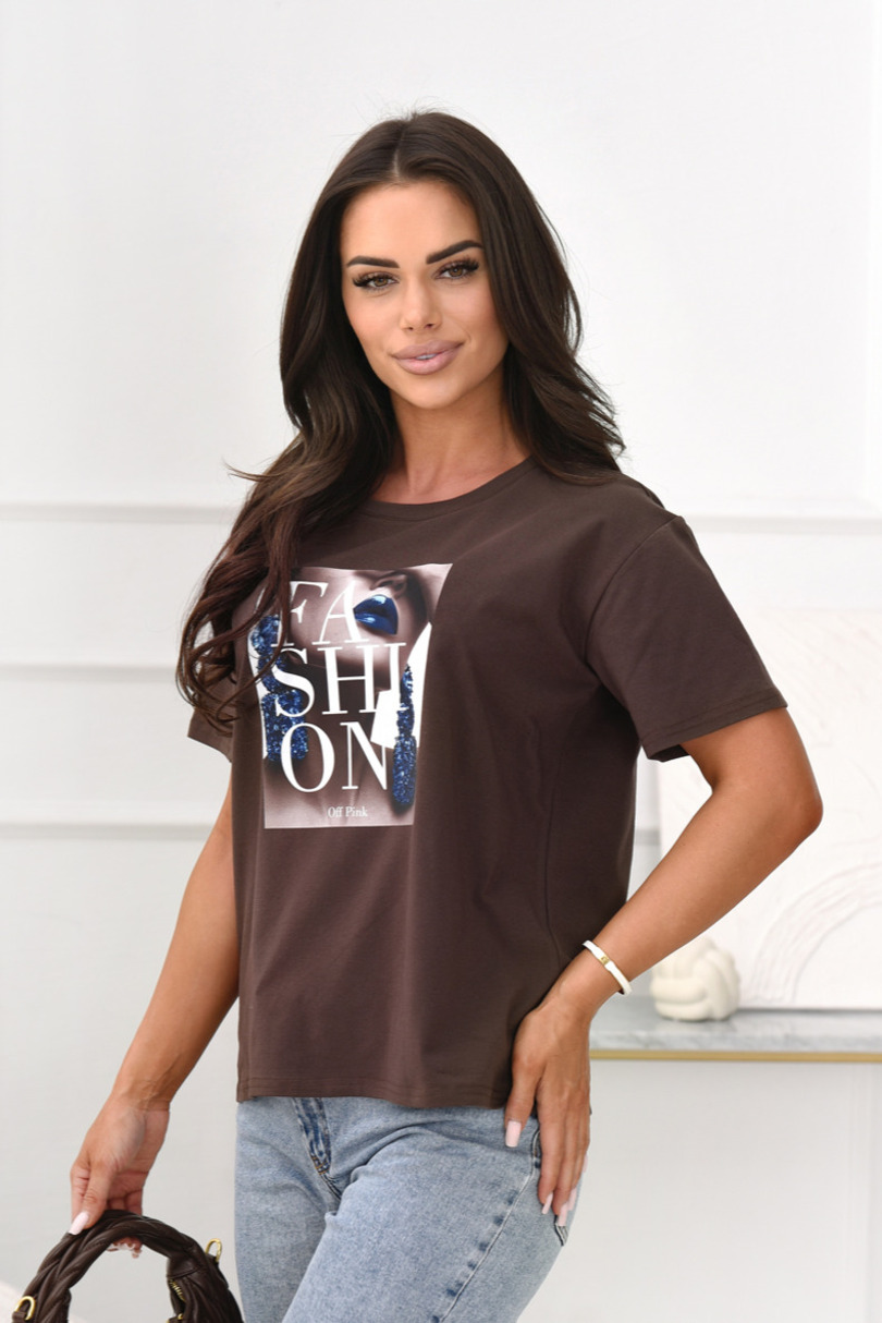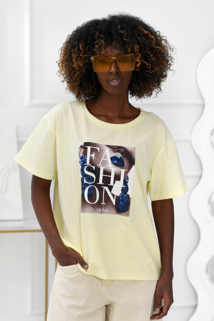 Ця жіноча футболка з великим, яскравим принтом – обов’язковий елемент гардеробу кожної жінки. Її класичний прямий крій ідеально облягає фігуру, забезпечуючи комфорт та свободу рухів протягом усього дня. Виготовлена з високоякісного бавовняного трикотажу з еластаном, тканина м’яка, дихаюча та злегка еластична. Дихаюча тканина гарантує комфорт як у теплі дні, так і під час фізичної активності. Великий принт надає футболці модного, сучасного вигляду, що робить її ідеальною для повсякденного, спортивного та повсякденного образу. Ця футболка ідеально поєднується з джинсами, легінсами, шортами або спідницею, створюючи стильний та зручний образ для будь-якої нагоди.