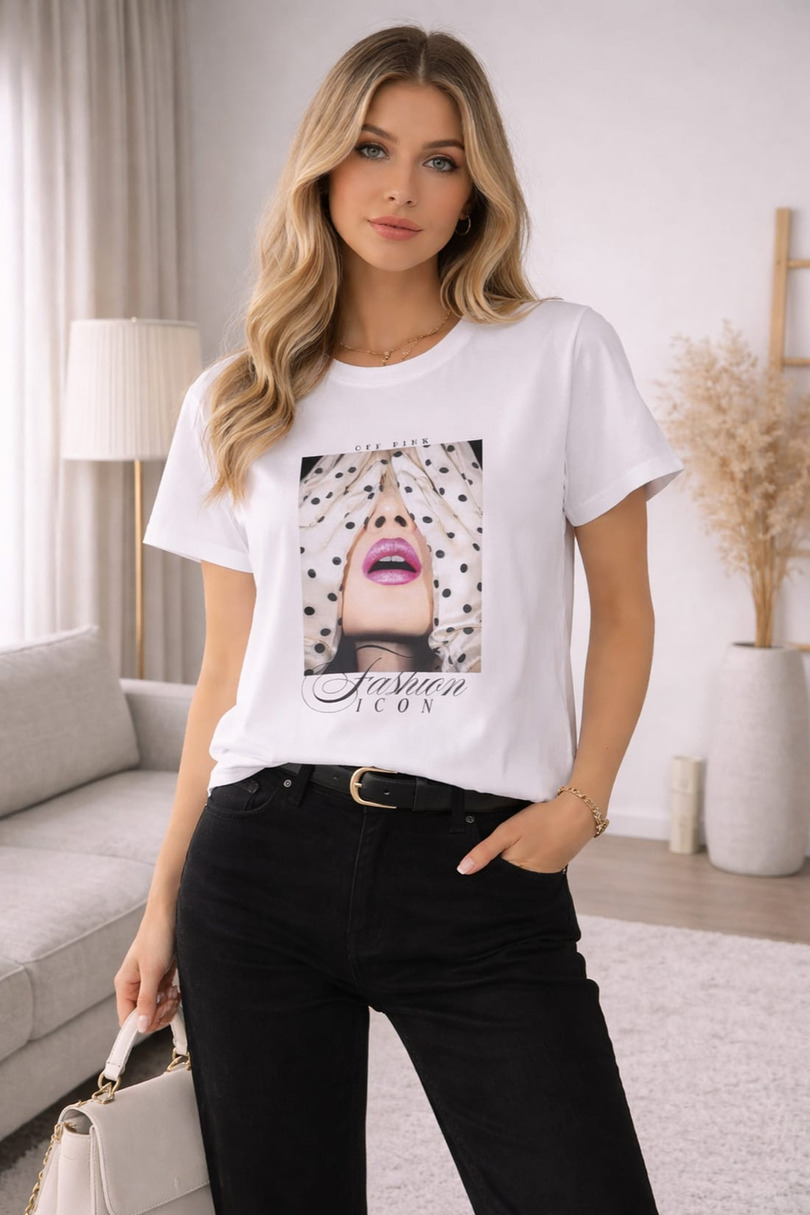 Ця стильна жіноча футболка поєднує класичний стиль із сучасним дизайном, ідеально відображаючи сучасні модні тенденції. Виготовлена з високоякісної м'якої бавовни, вона гарантує максимальний комфорт протягом усього дня – незалежно від нагоди. Універсальний крій з круглим вирізом горловини та короткими рукавами забезпечує ідеальну посадку, підкреслюючи ваші природні риси. Ця модна футболка добре поєднується як з повсякденними образами з джинсами та кросівками, так і з більш елегантними образами – наприклад, у поєднанні з блейзером або спідницею. Тонка, але виразна деталь надає їй унікального характеру, дозволяючи вам виділитися з натовпу, не перебільшуючи. Це чудовий вибір для жінок, які цінують комфорт, стиль та позачасову моду.