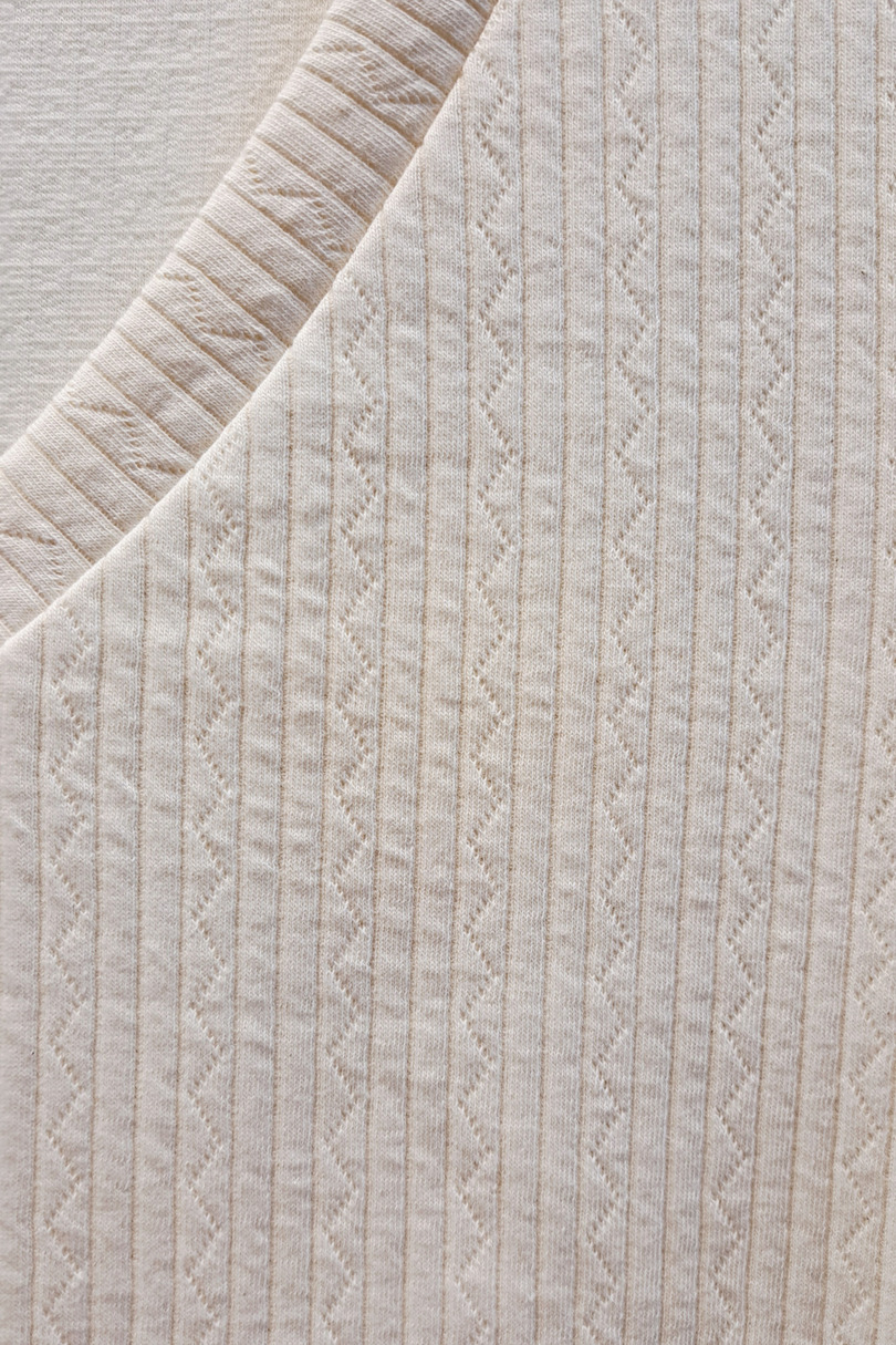 Блузка «Сюзанна» – це класика з сучасним відтінком – елегантна, але неймовірно зручна. Виготовлена з м’якої ребристої бавовни, вона чудово драпірується по фігурі, ледь помітно підкреслюючи її та додаючи образу характеру. Довгі рукави роблять її ідеальним вибором для прохолодних днів, а V-подібний виріз звужує шию та додає жіночності. Завдяки своєму позачасовому крою ця блузка добре поєднується як з повсякденним одягом, так і з більш елегантними ансамблями. Невелика, але вражаюча деталь – декоративна пластина Off Pink – додає унікального завершального штриха.