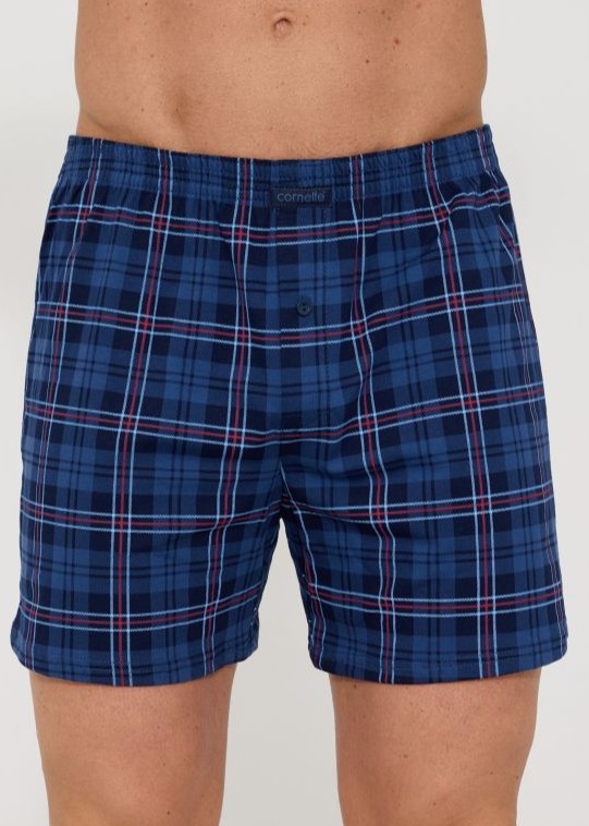Чоловічі боксерські шорти вільного крою, що забезпечує повну свободу рухів. Елегантний візерунок у клітинку. Зручний еластичний пояс з бавовняною обробкою, застібка на ґудзиках. Склад: 100% бавовна.