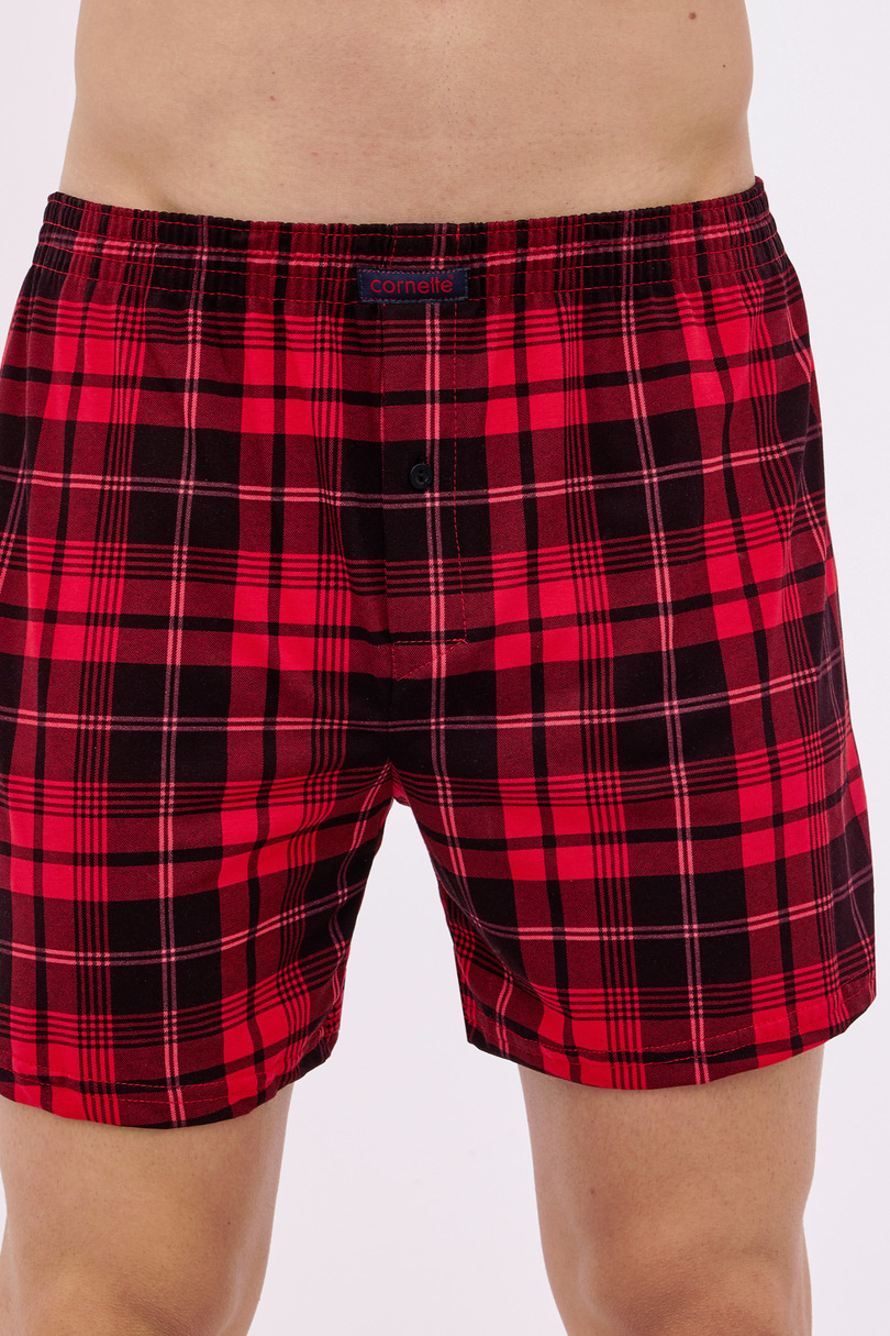 Чоловічі шорти боксери вільного крою в клітку. Зручний еластичний пояс з бавовняною обробкою. Мушка застібається на гудзик. Упакований в коробку. Склад: 100% бавовна.