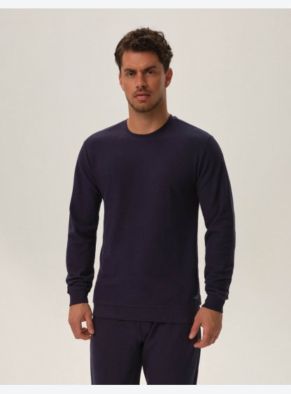 Чоловіча піжама з високоякісної бавовни. Толстовка з довгим рукавом і напівкруглим вирізом, з принто..