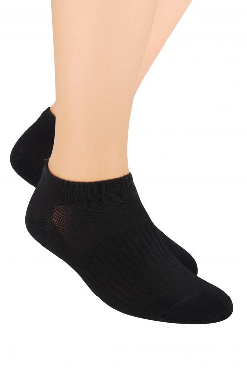 Чоловічі гладкі бавовняні шкарпетки. Додаткові манжети стабілізують шкарпетки на ногах, а вентиляційна сітка полегшує приплив повітря. Ідеально підходить для щоденного використання, а також для занять спортом. Випускається в білому та чорному кольорах.