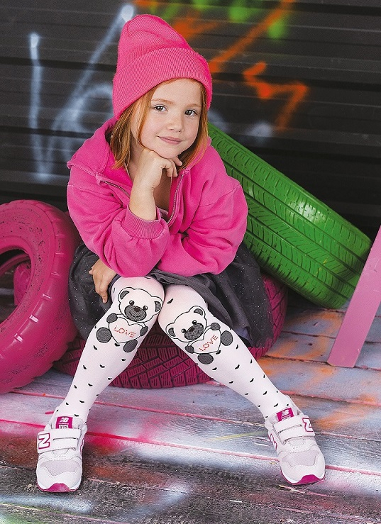 Колготки дитячі з візерунком з мікрофібри, товщина 40Den. Прикрашений барвистим візерунком плюшевого ведмедика та сердечок і мерехтливих струменів.Склад: 94% поліамід, 6% еластан.