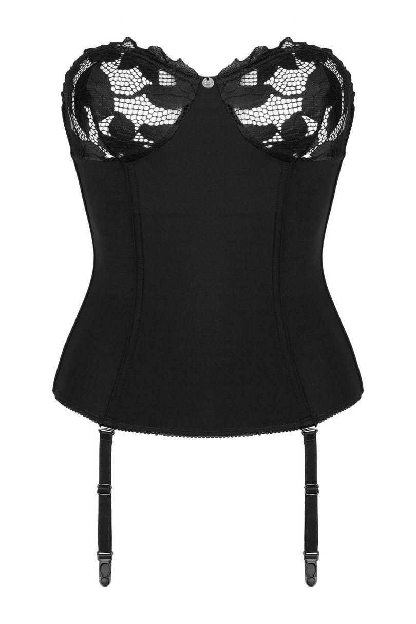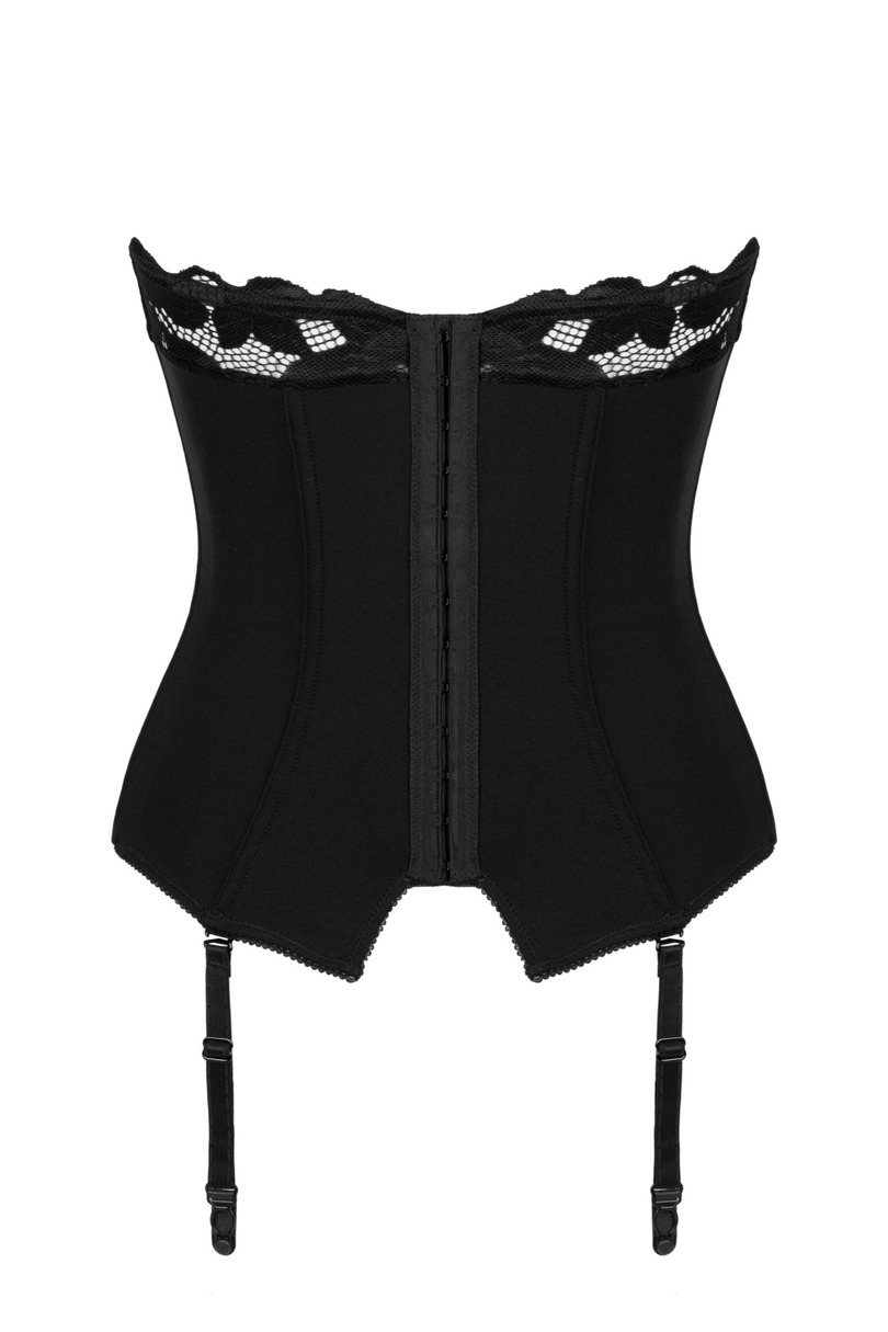 Дізнайтеся більше деталей: - чорний корсет Editya - вертикальні кісточки - чуттєво підкреслений силует - регульовані бретелі для панчіх - комфорт та зручність - застібка по всій довжині спини - регульована посадка - силіконова підкладка ззаду - корсет тримається на місці - трусики не входять до комплекту - приємний на дотик матеріал (85% поліамід, 15% еластан)