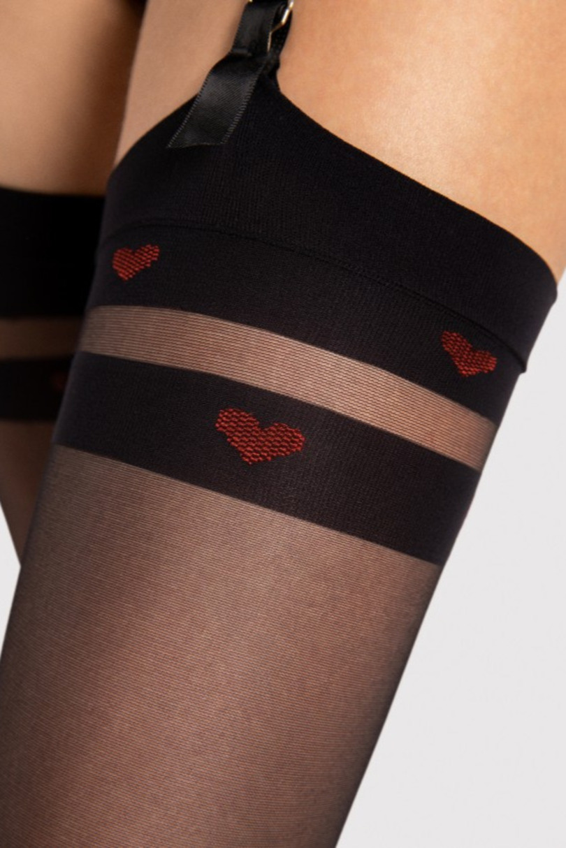 Панчохи ETERNAL 20 DEN від Fiore – це надзвичайно жіночна та чуттєва модель, яка полонить своїм оригінальним дизайном та елегантним оздобленням. Відмінною особливістю є ніжні червоні сердечка, розміщені на широкій манжеті, які додають романтичного, але водночас спокусливого штриха. Ніжна товщина 20 DEN забезпечує напівпрозорий ефект, гарно підкреслюючи форму ніг та додаючи вбранню легкості. Гнучкий, високоякісний матеріал ідеально адаптується до фігури, забезпечуючи комфорт протягом дня чи вечора. Модель ETERNAL розроблена для носіння з поясом, що робить її чудовим вибором для елегантної білизни та вбрання для особливих випадків. Ці панчохи призначені для жінок, які хочуть поєднати класичний стиль з романтичним відтінком.