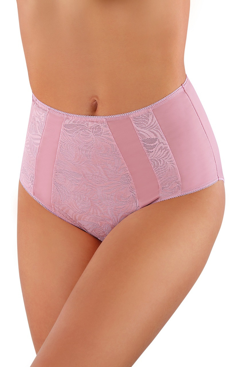 Моделювання жіночих трусів з високим, закритим кроєм. Спереду прикрашають вставки з не розтягується матеріалу з квітковим малюнком. Ідеальна корекція живота і стегон. Склад: 92% бавовна, 8% еластан.