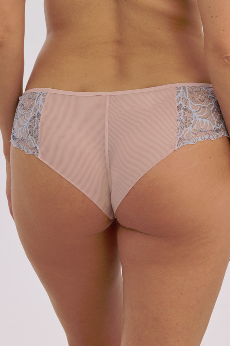 Трусики Cameron Art. 1371 Brazilian – це унікальне поєднання витонченості, комфорту та жіночної чарівності. Ніжний, гладкий тюль пудрового відтінку створює легку та елегантну основу, а бічні вставки з майстерно обробленого світло-блакитного мережива додають вишуканості. Гармонійне поєднання кольорів робить цю модель неймовірно стильною та вишуканою. Бразильський крій чудово підкреслює природний вигин сідниць, забезпечуючи ледь помітний моделюючий ефект, зберігаючи при цьому повний комфорт. М'які та гнучкі матеріали ідеально облягають тіло, залишаючись непомітними під одягом. Це ідеальний вибір для жінок, які цінують елегантність, витончені деталі та щоденний комфорт. 75% поліамід, 15% еластан, 10% бавовна