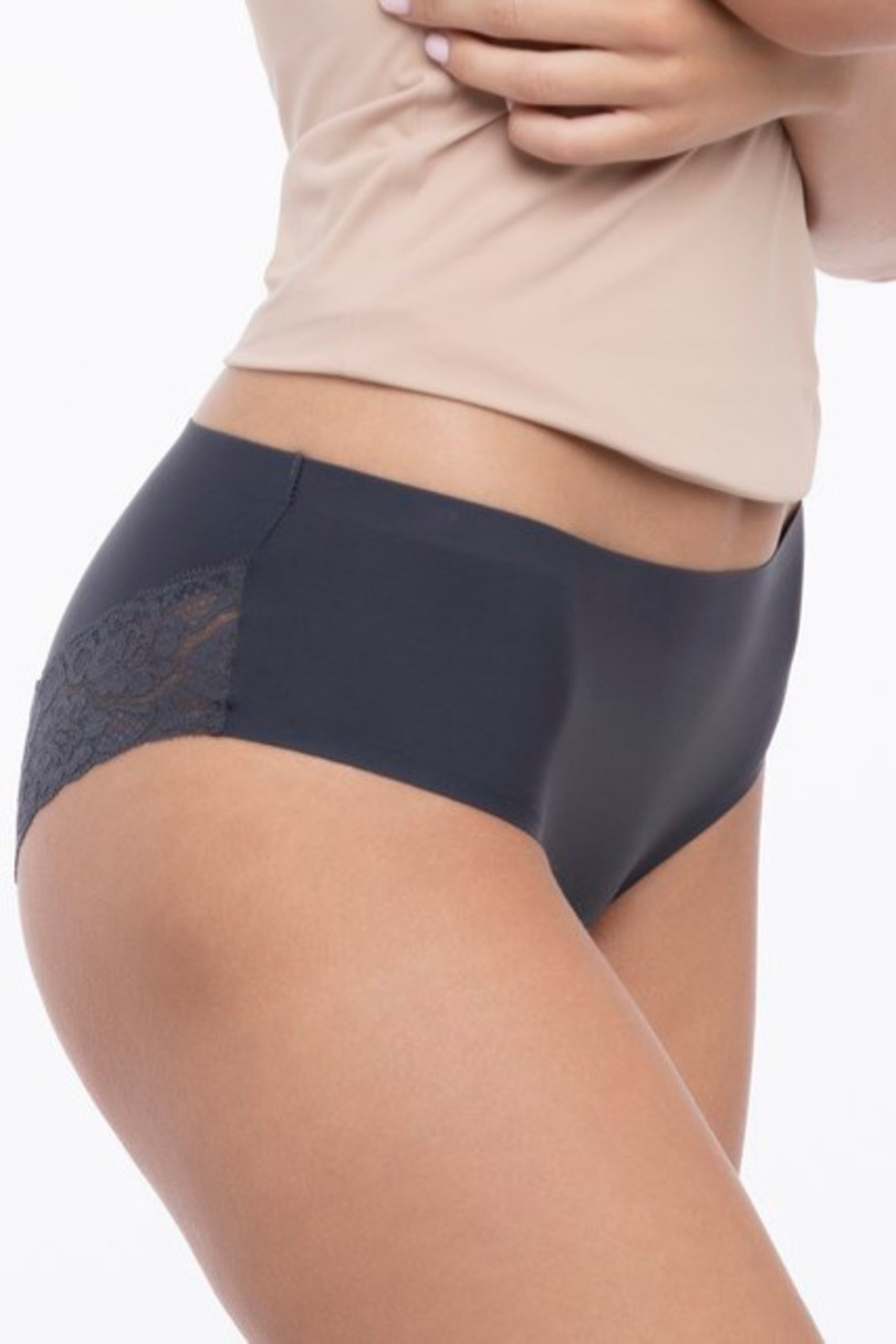 Ці трусики виготовлені з технології INVISIBLE-LINE з надтонкими краями. Задня частина оздоблена мереживом. Технологія безшовних країв JULIMEX INVISIBLE LINE® робить трусики практично непомітними під одягом. Для комфорту кожен фасон має підкладку зі 100% бавовни. Доступні в розмірах від S до XL. Склад: 89% поліамід, 10% еластан, 1% бавовна.