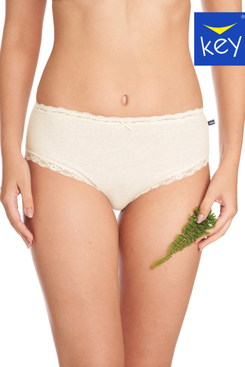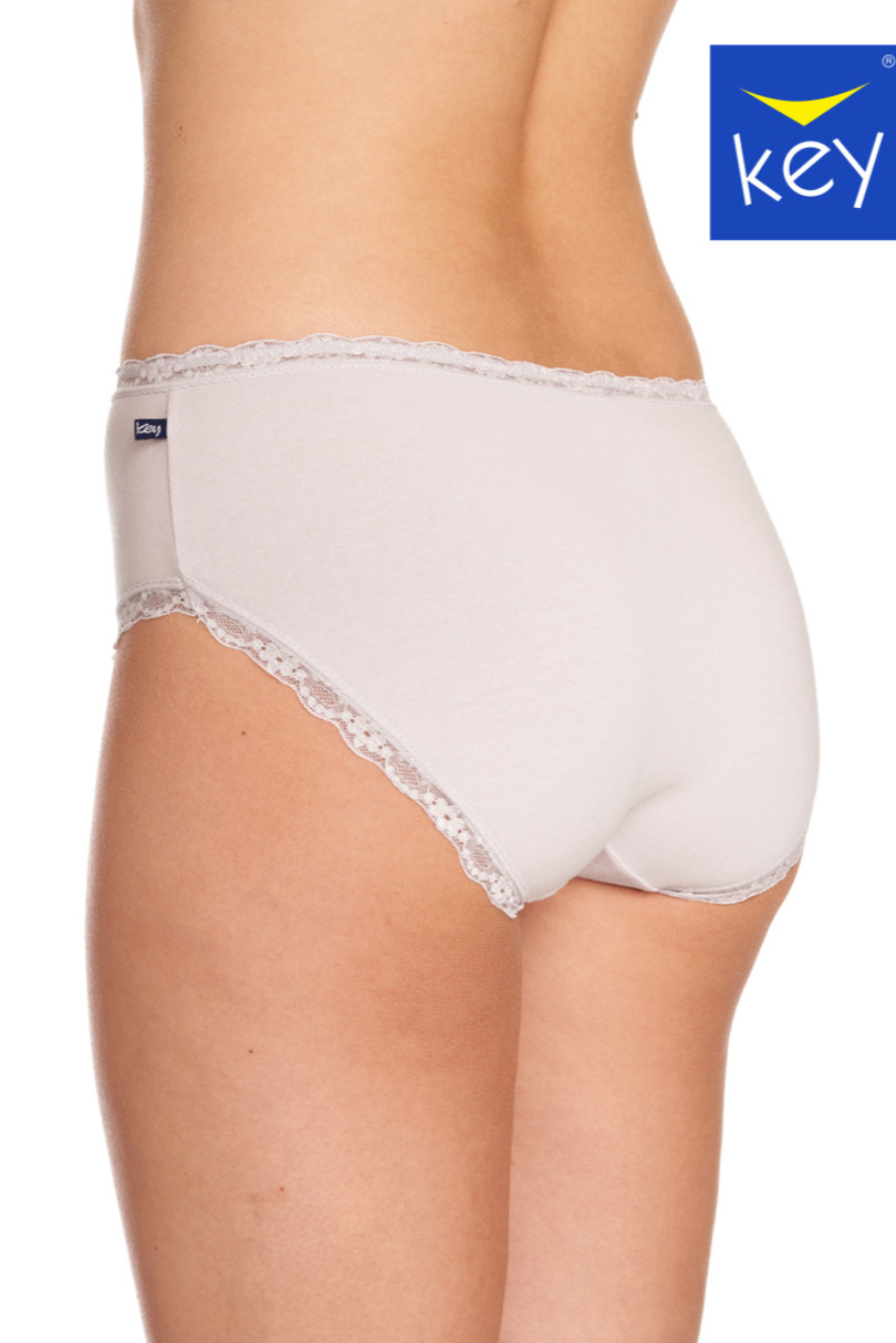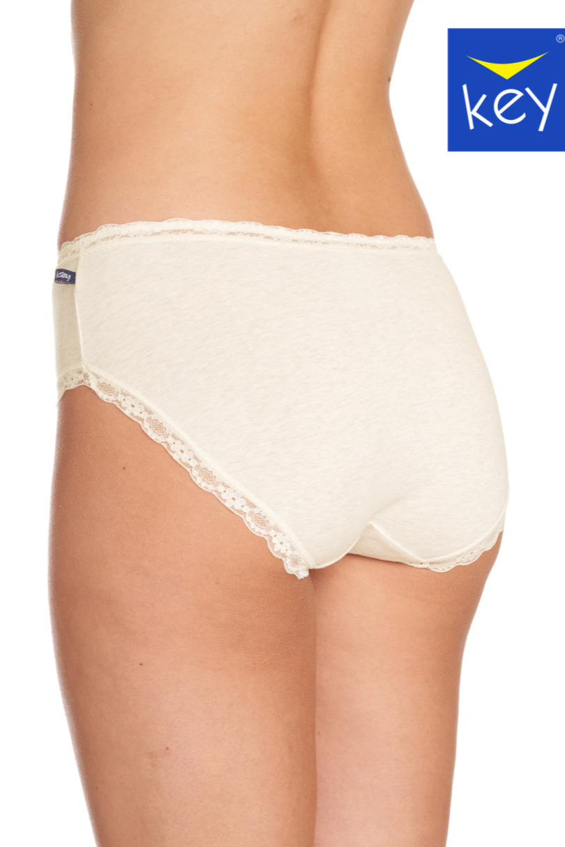 Жіночі трусики-бікіні міді з мереживною обробкою. Упаковані в коробку з двох штук. Склад: 95% бавовна, 5% еластан