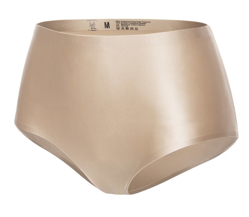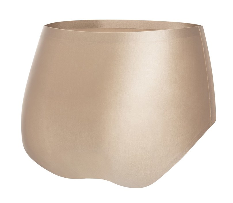 Жіночі труси максі, ретельно виготовлені з блискучої, еластичної тканини кольору шампанського беж. Модель STAR MAXI виготовлена з безшовної технології INVISIBLE-LINE, яка гарантує, що краї не впиватимуться в тіло та не створюватимуть непривабливих ліній під одягом. Крій цих трусиків сподобається тим, хто віддає перевагу фасонам з високою талією, широкими боками та природно низьким вирізом штанин. Труси мають гігієнічну бавовняну ластовицю та доступні в розмірах S-XL. Також доступний класичний варіант. Склад: 89% поліамід, 10% еластан, 1% бавовна.