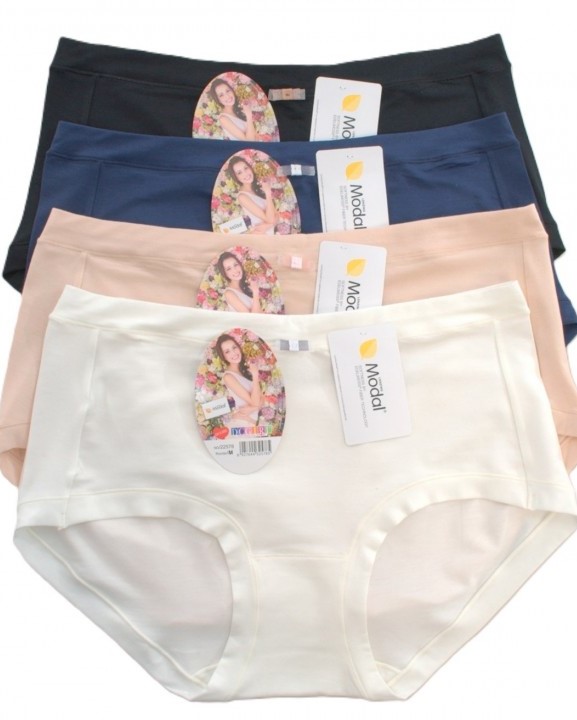 Жіночі труси з ніжного модалу. Висока посадка на стегнах. Упаковані в упаковках по 12 штук у міксі кольорів. Різні розміри в упаковці (S, M, L, XL). Склад: 94% модал, 6% еластан.