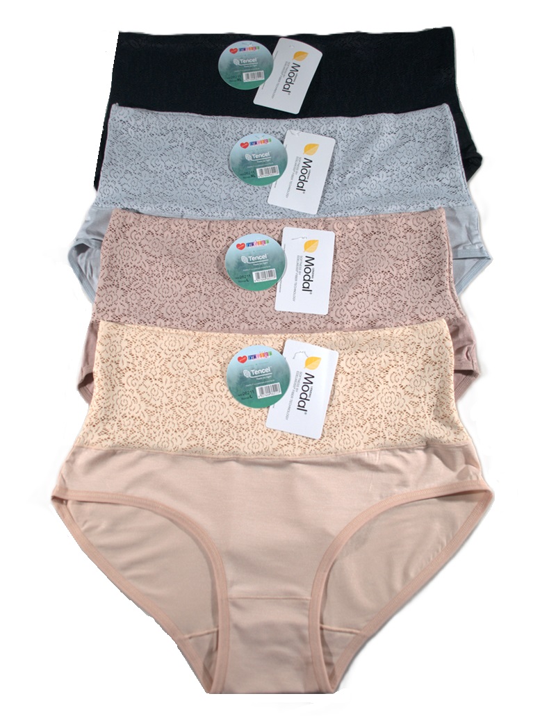 Жіночі труси з м'якого модалу. Високий крій, ідеально сидять. Упаковка з 12 штук. Різні кольори та розміри (L, XL, 2XL, 3XL). Склад: 94% модал, 6% еластан.