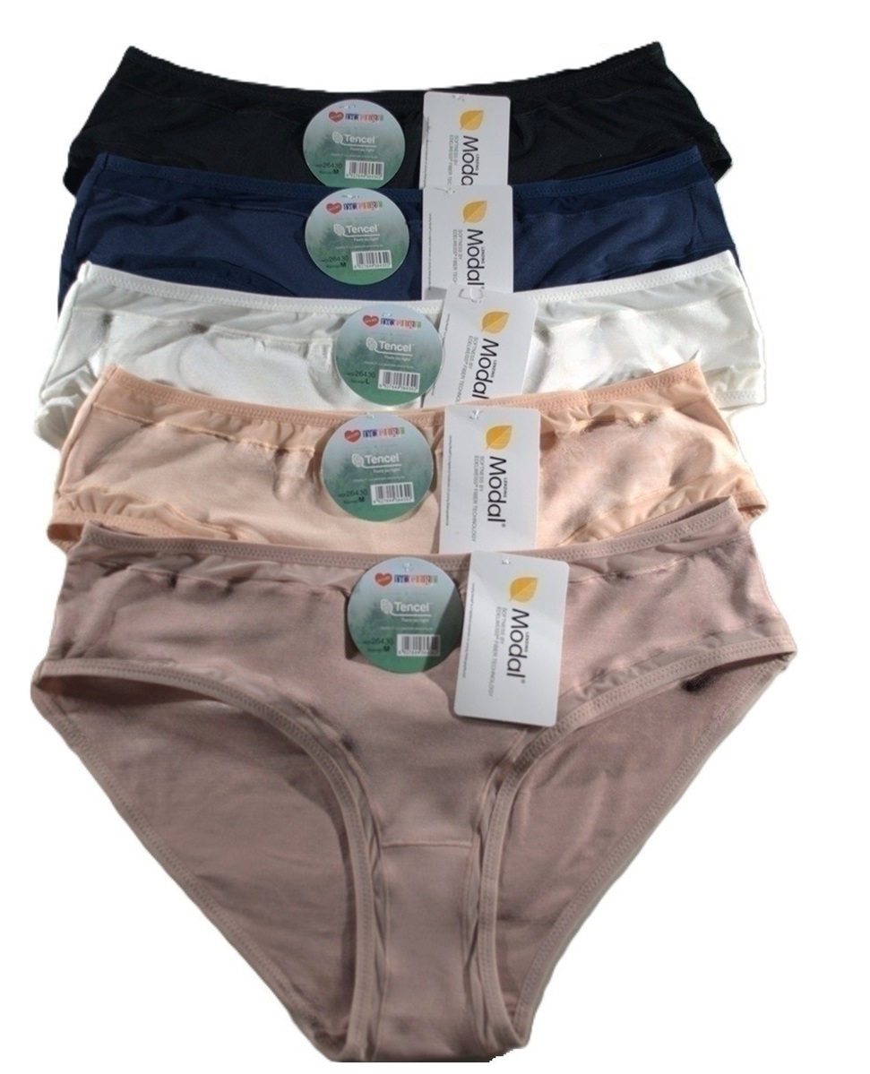 Жіночі труси з м'якого модалу. Ідеально прилягають до фігури. Упаковка з 12 штук. Різні розміри (M, L, XL) та кольори в упаковці. Склад: 94% модал, 6% еластан.