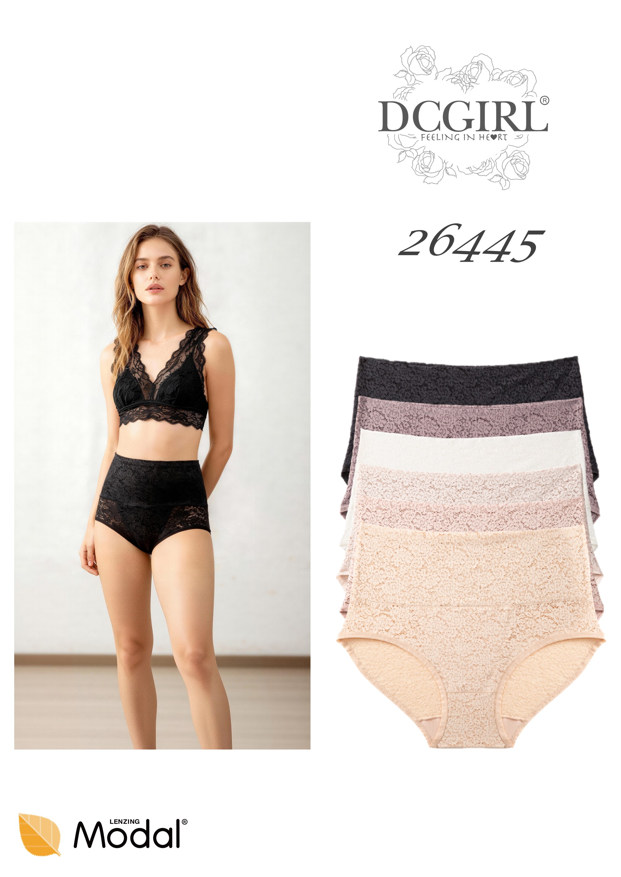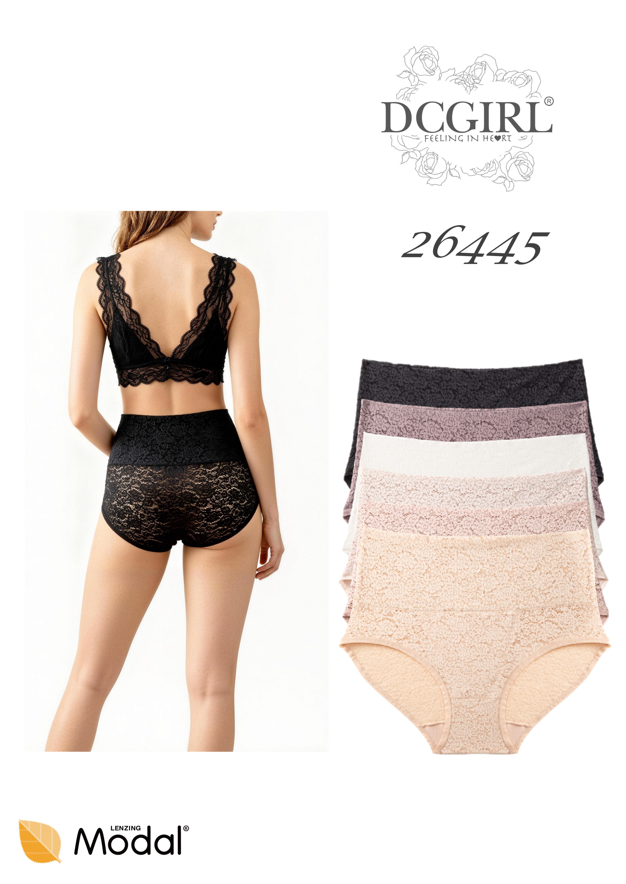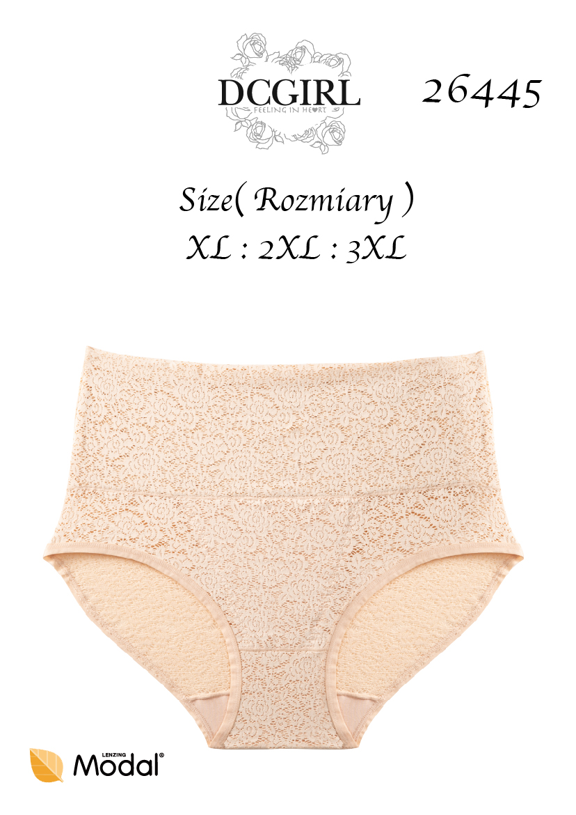 Жіночі труси з високоякісного модалу. Декоровані ніжною текстурою, з високою талією. Надзвичайно м'які та приємні на дотик. Упаковані в упаковки по 12 штук у міксі кольорів та розмірів (XL, XXL, XXXL). Склад: 94% модал, 6% еластан.