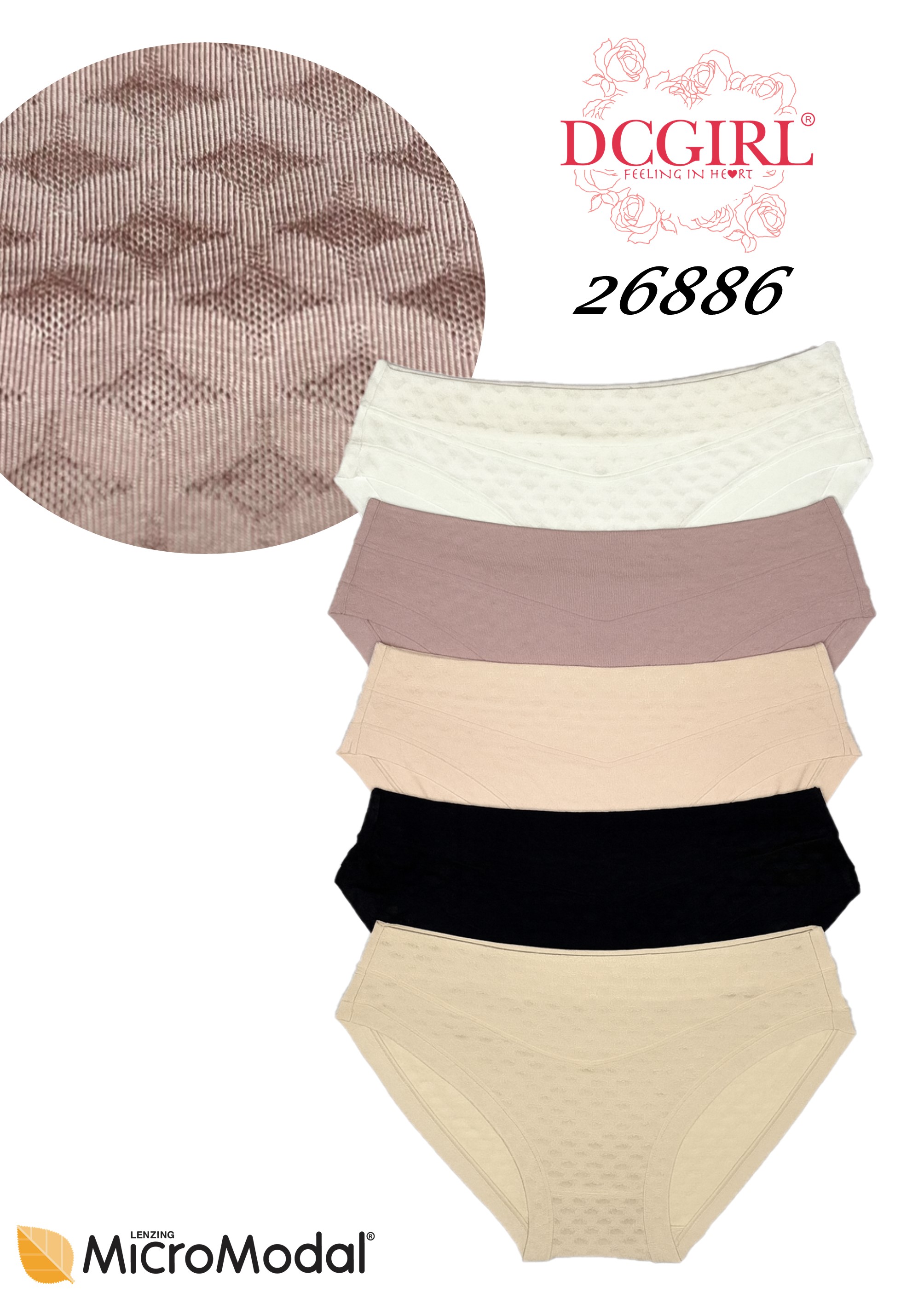 Жіночі трусики-бікіні виготовлені з високоякісного матеріалу. Ніжний візерунок. Упаковані по 12 штук у різних розмірах (S, M, L) та кольорах. Склад: 89,5% модал, 10,5% спандекс.