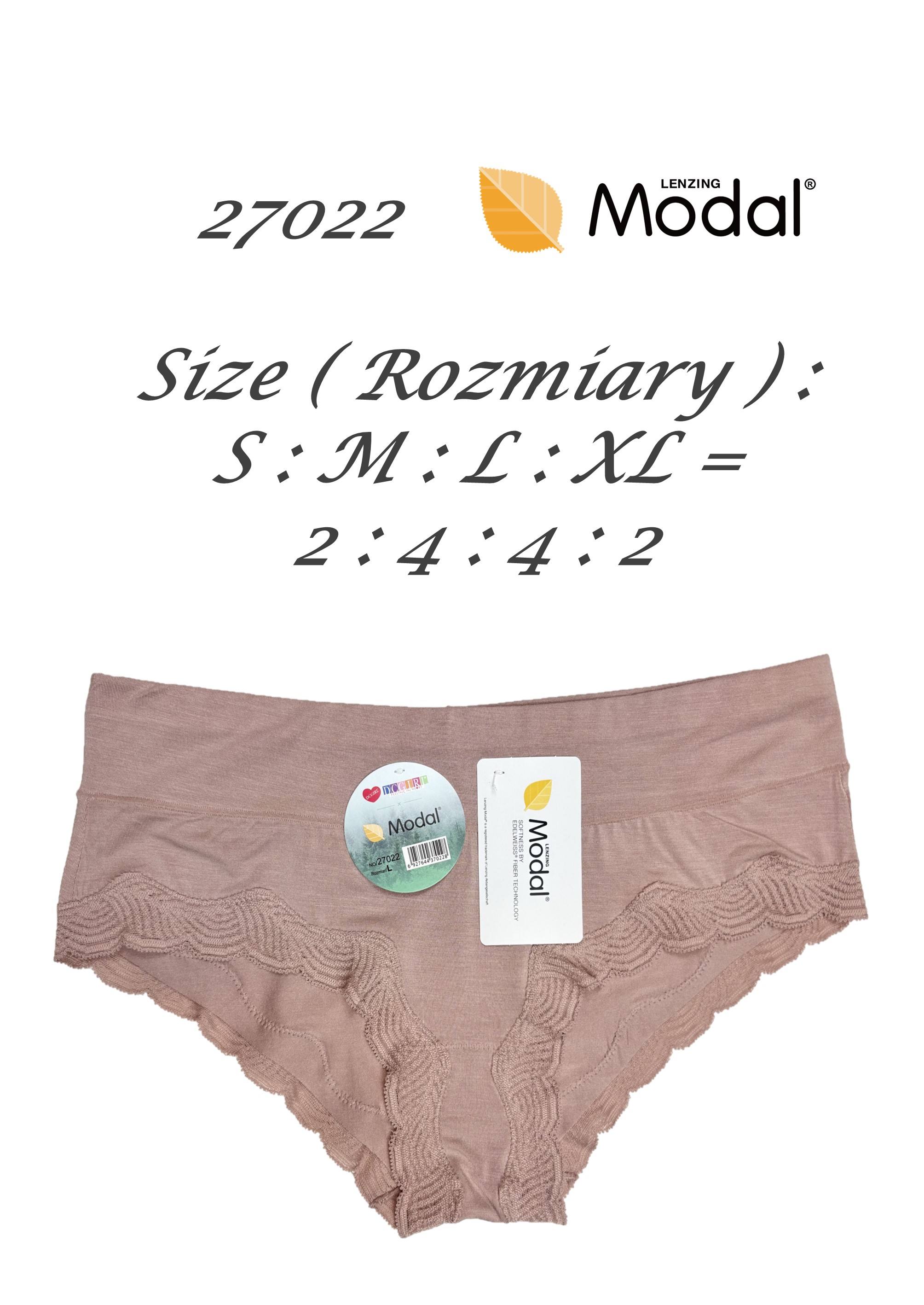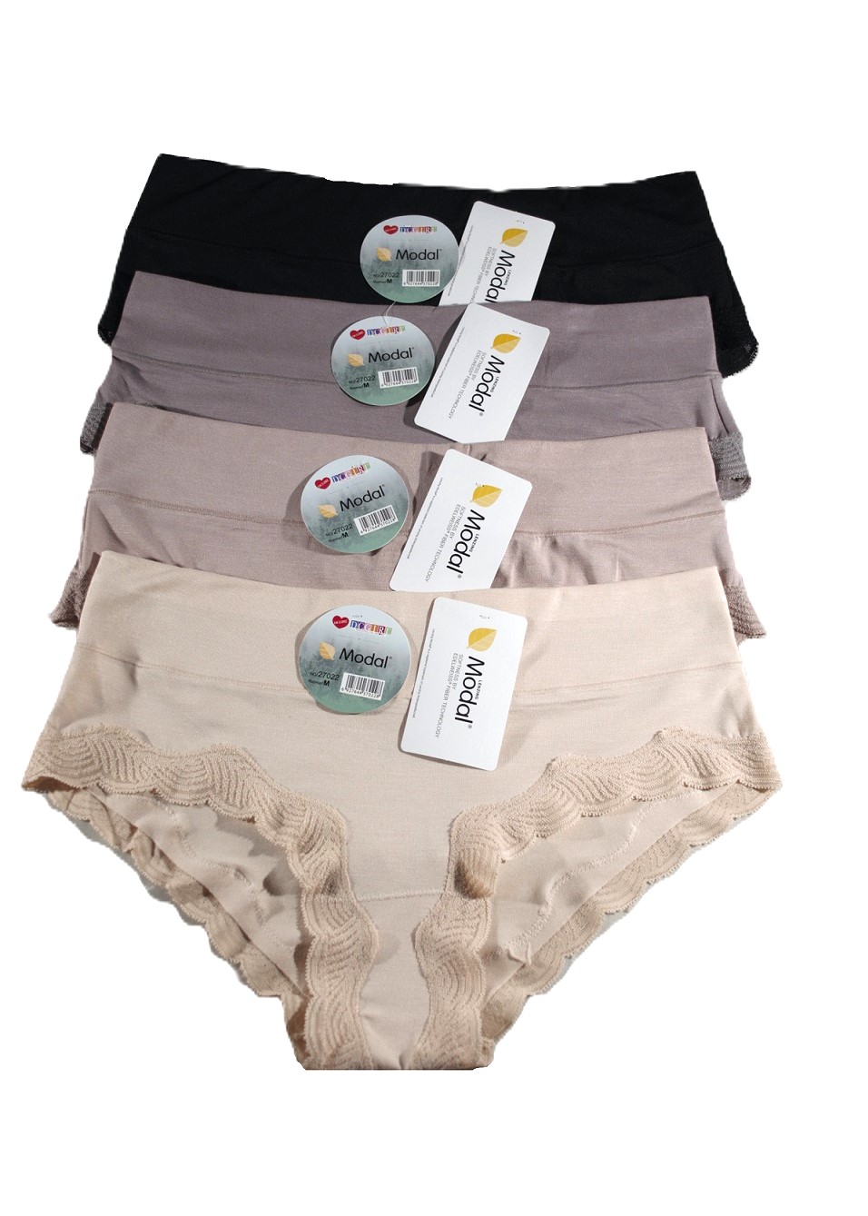 Жіночі труси з м'якого модалу, облягаючі на стегнах. Упаковка з 12 шт. різних кольорів. Різні розміри (S, M, L, XL). Склад: 94% модал, 6% еластан.