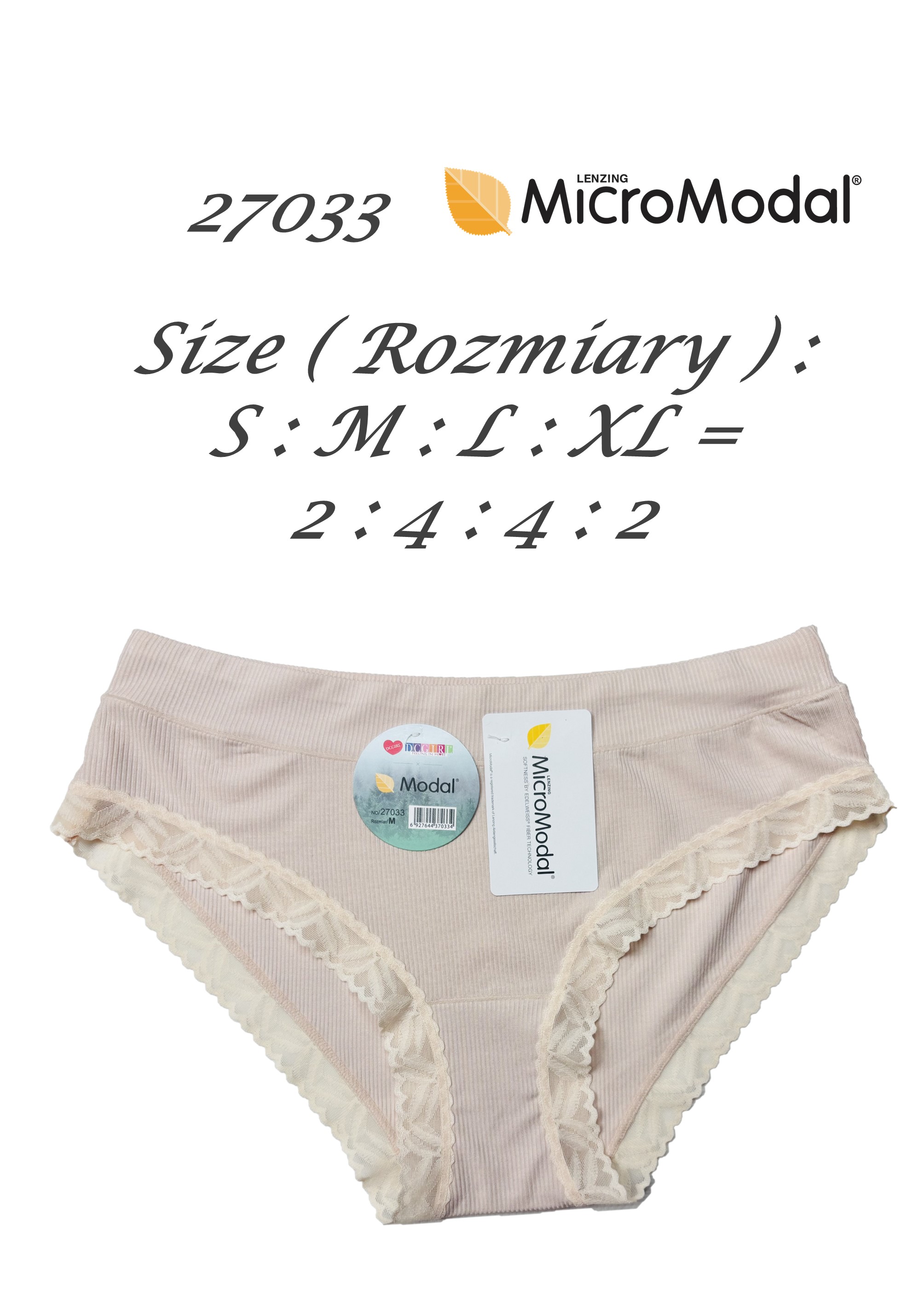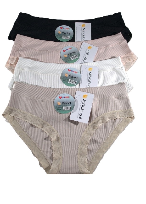 Жіночі труси з м'якого модалу, оздоблені мереживом. Упаковка з 12 шт. різних кольорів. Різні розміри (S, M, L, XL). Склад: 89,5% модал, 10,5% еластан.