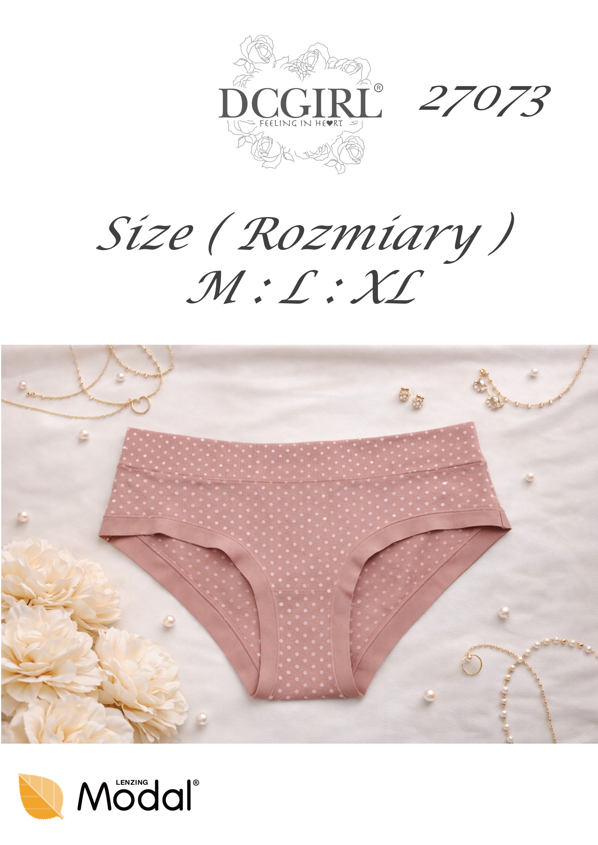 Жіночі трусики з ніжного модалу в горошок. Ідеально сидять. Упаковані в упаковки по 12 штук у різних кольорах та розмірах (M, L, XL). Склад: 94% модал, 6% еластан.