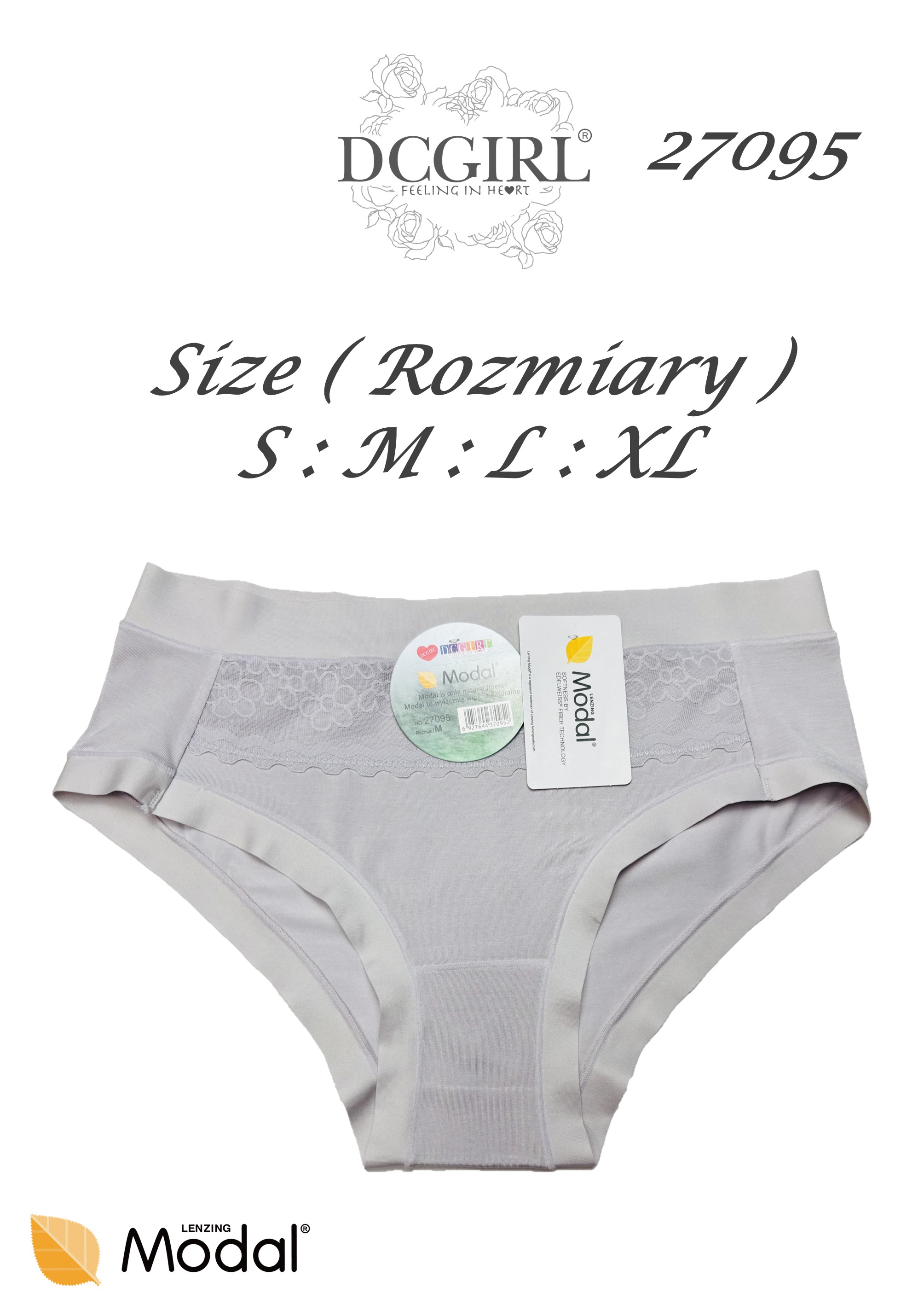 Жіночі труси з високоякісного модалу. Декоровані ніжною вставкою спереду. Надзвичайно м'які та приємні на дотик. Упаковані в упаковки по 12 штук у міксі кольорів та розмірів (S, M, L, XL). Склад: 94% модал, 6% еластан.