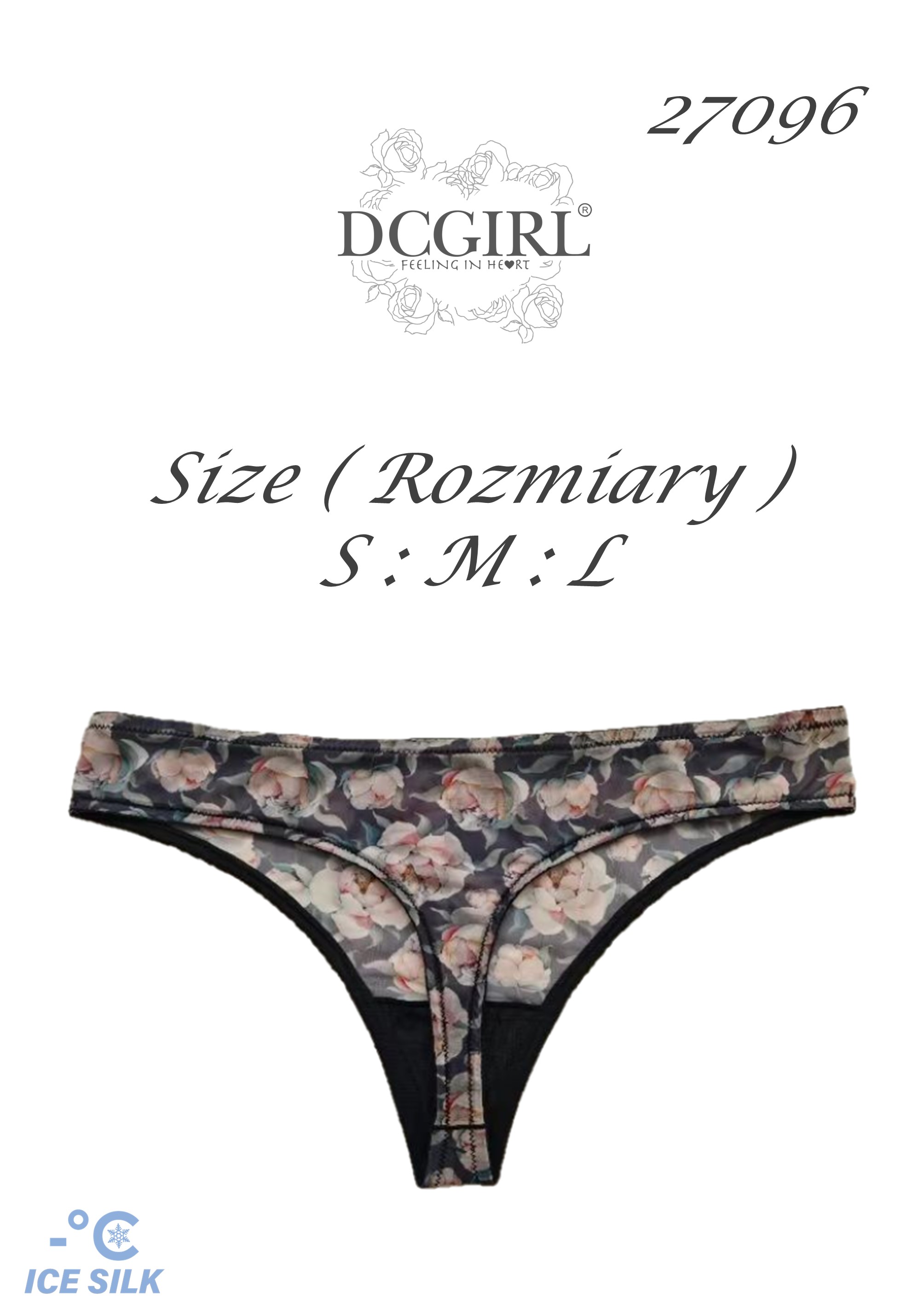 Винятково ніжні та тонкі жіночі стрінги з квітковим принтом, виготовлені з високоповітропроникного та гігроскопічного матеріалу. Упаковані по 12 штук у міксі кольорів та розмірів (S, M, L). Склад: 75% нейлон, 25% спандекс.