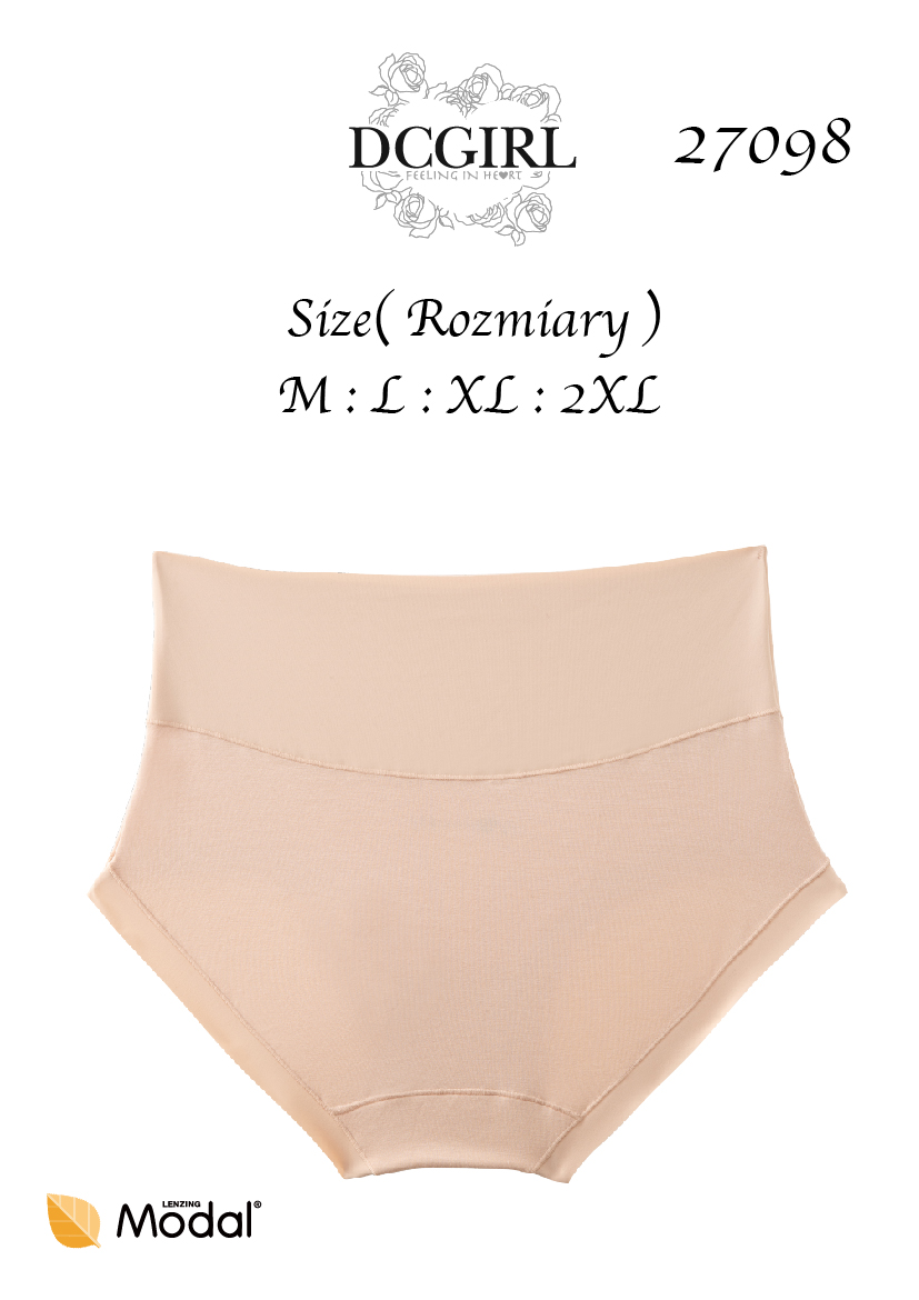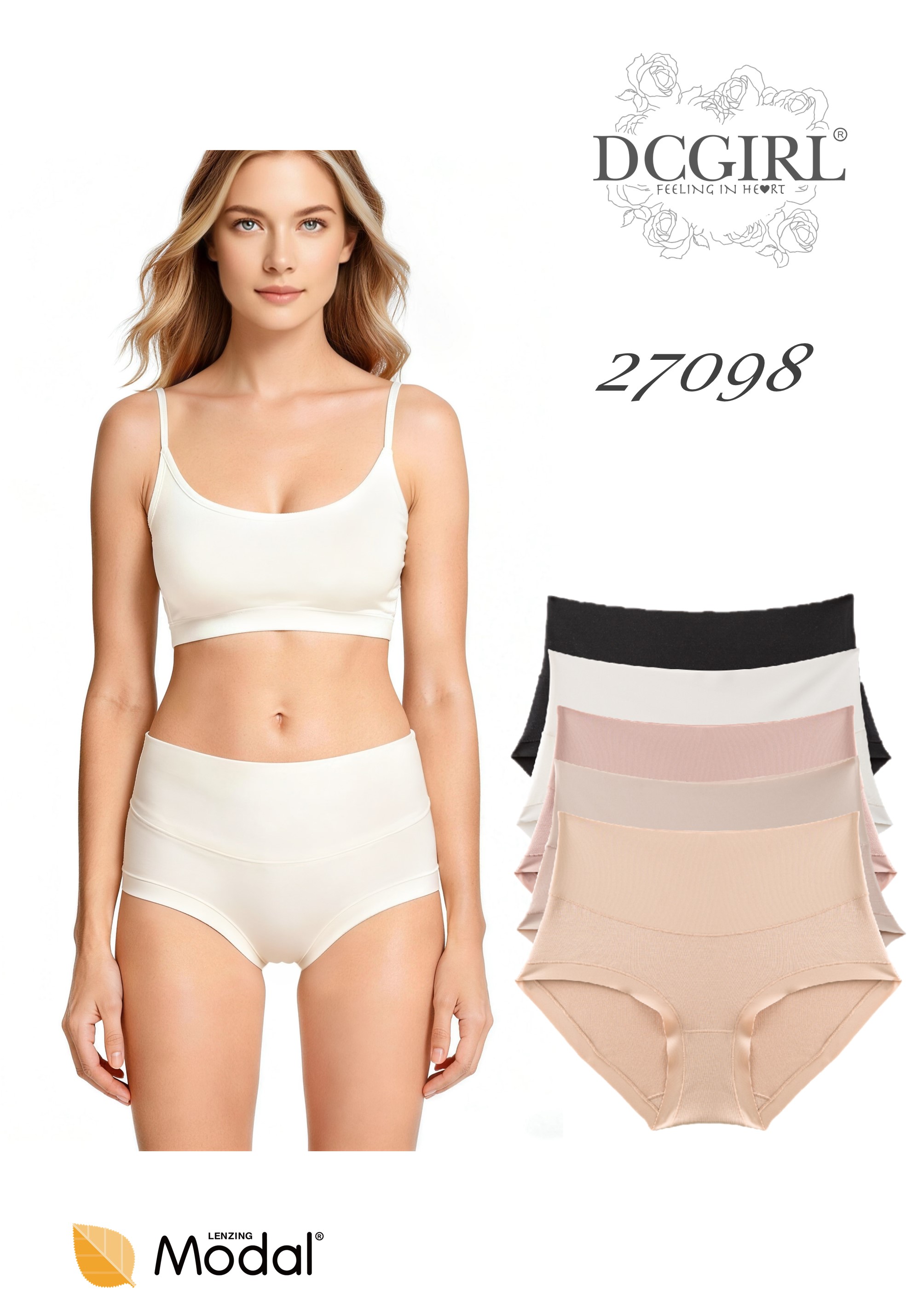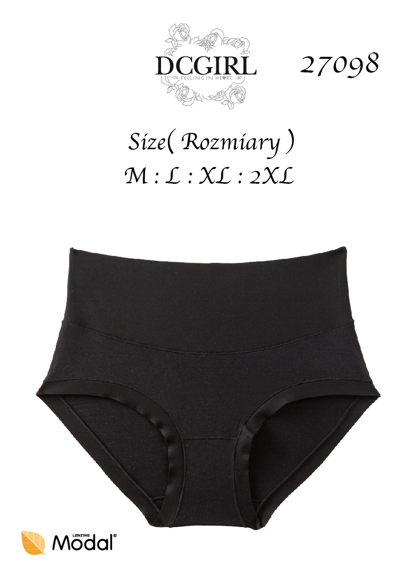 Гладкі жіночі труси з високоякісного, ніжного модалу. З високою талією, надзвичайно м'які та зручні. Упаковані в упаковки по 12 штук у різних кольорах та розмірах (M, L, XL, XXL). Склад: 94% модал, 6% еластан.