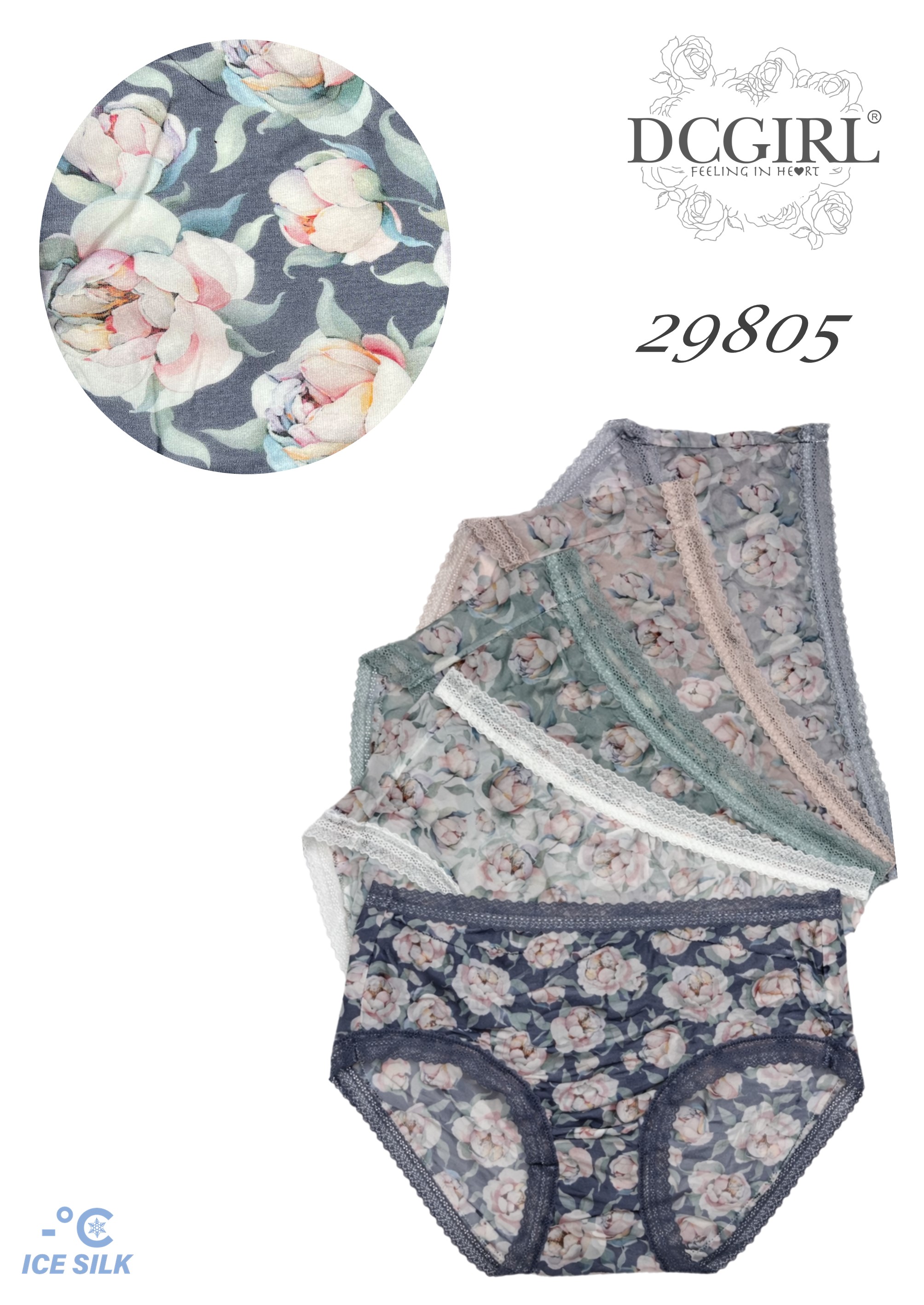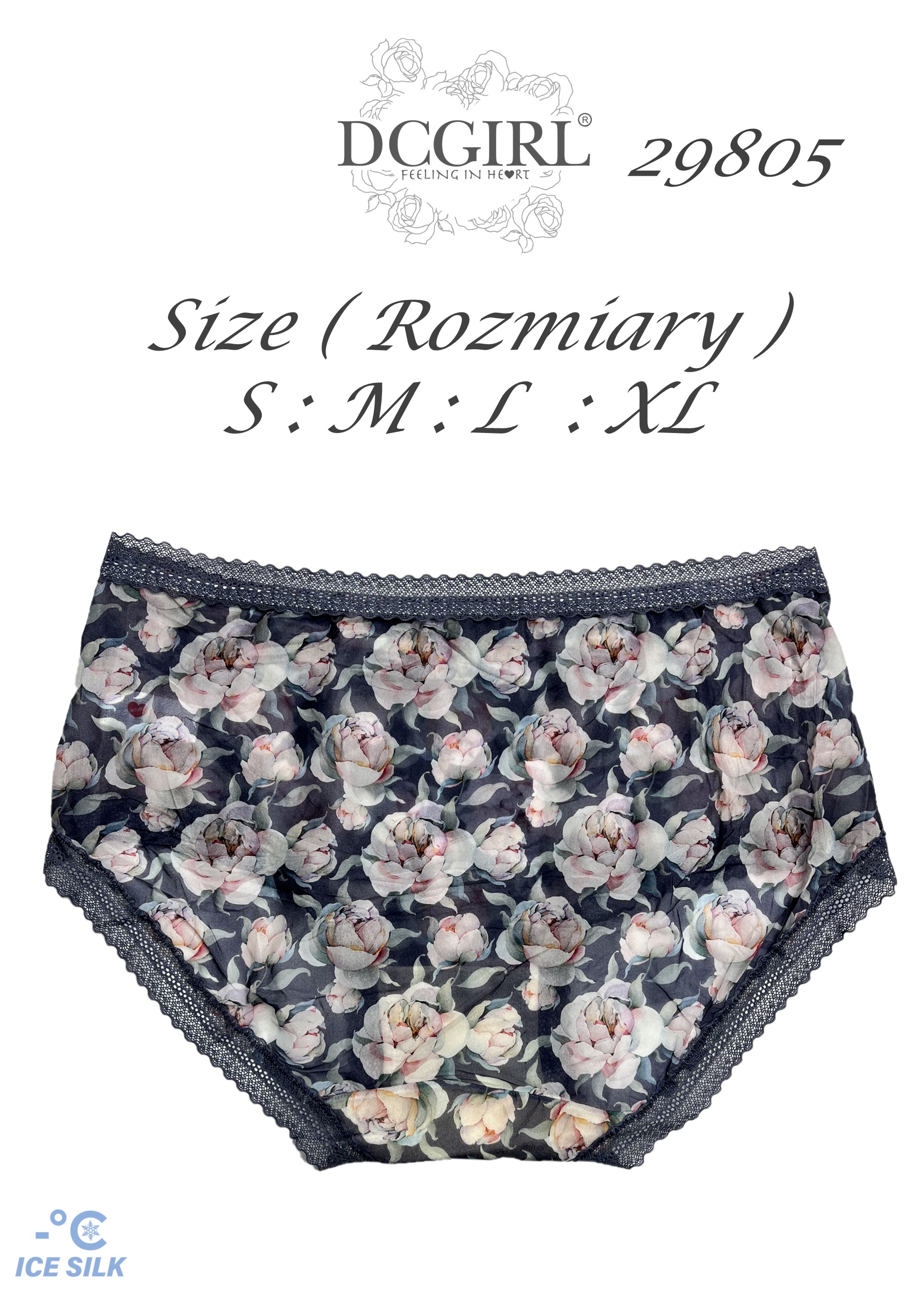 Надзвичайно ніжні та тонкі жіночі трусики з квітковим принтом. Упаковка з 12 шт. у різних кольорах та розмірах (S, M, L, XL). Склад: 75% нейлон, 25% спандекс.