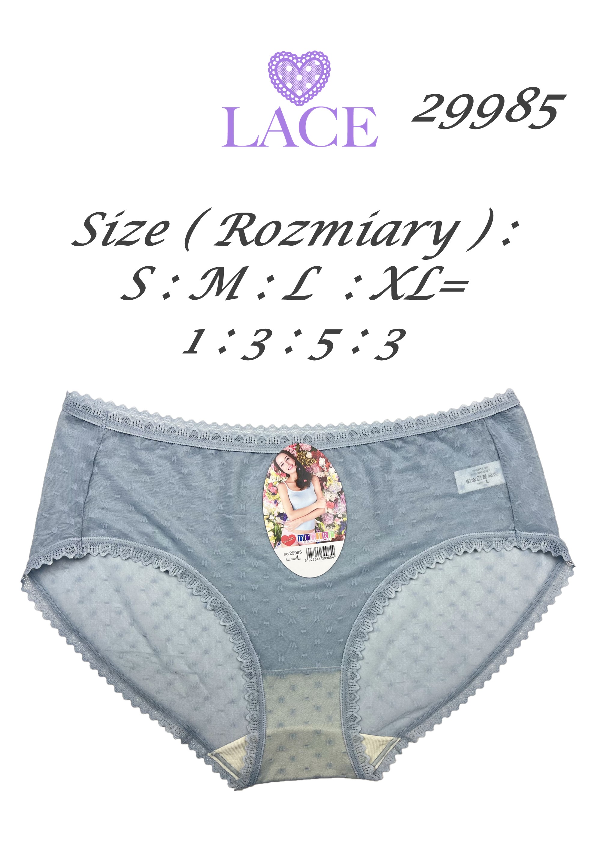 Винятково ніжні жіночі трусики з м'якої тканини. Упаковані в упаковку з 12 шт. у різних кольорах. Доступні в різних розмірах (S, M, L, XL). Склад: 69% нейлон, 31% спандекс.
