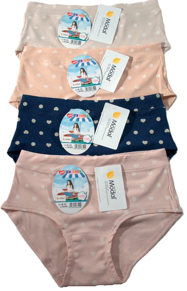 Гарні трусики для дівчинки з м'якого модалу. Високоякісний, дуже м'який та приємний на дотик матеріал. Упаковка з 12 шт. у міксі кольорів та розмірів (4-6, 6-8, 8-10, 10-12 років). Склад: 94% модал, 6% еластан.