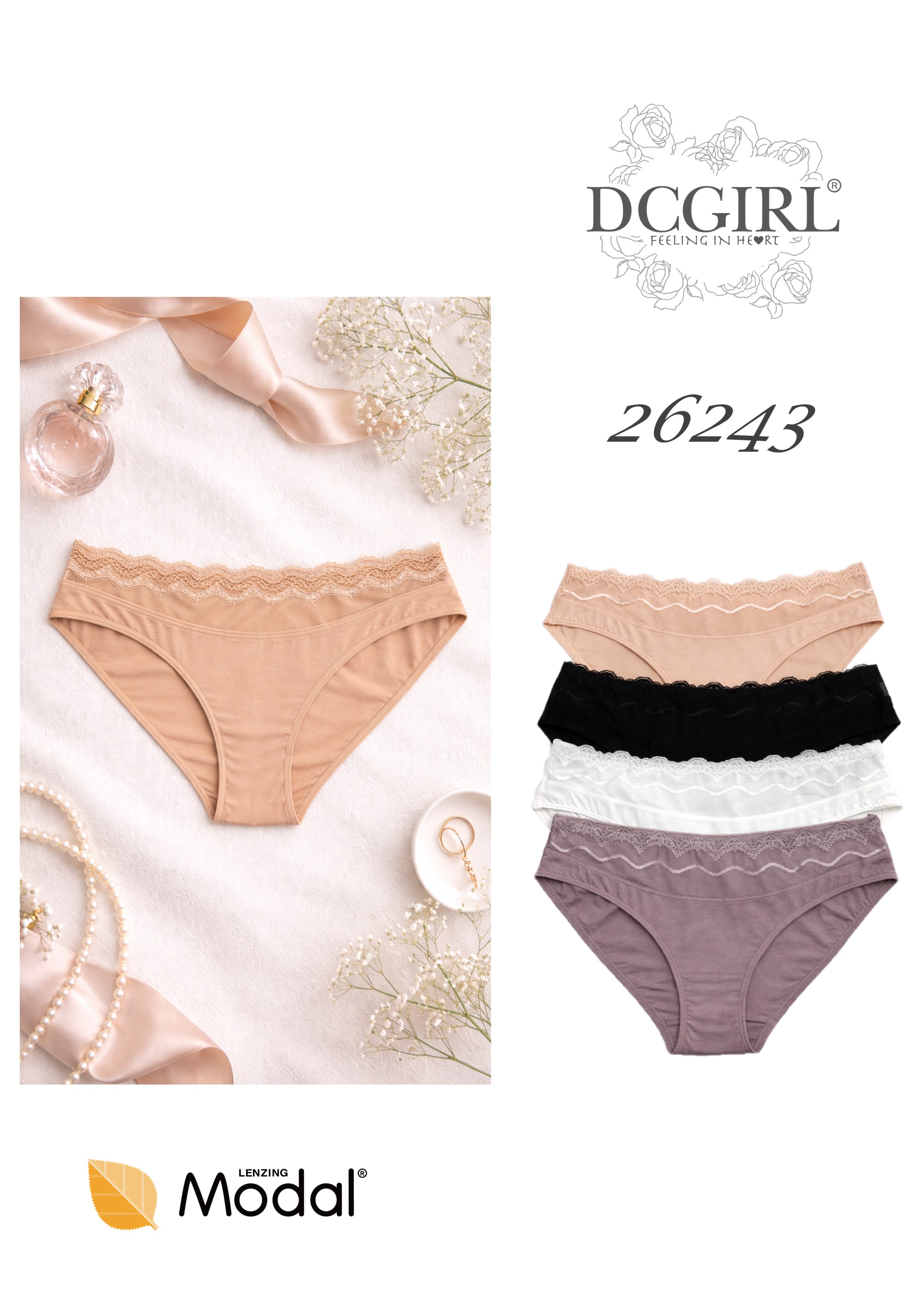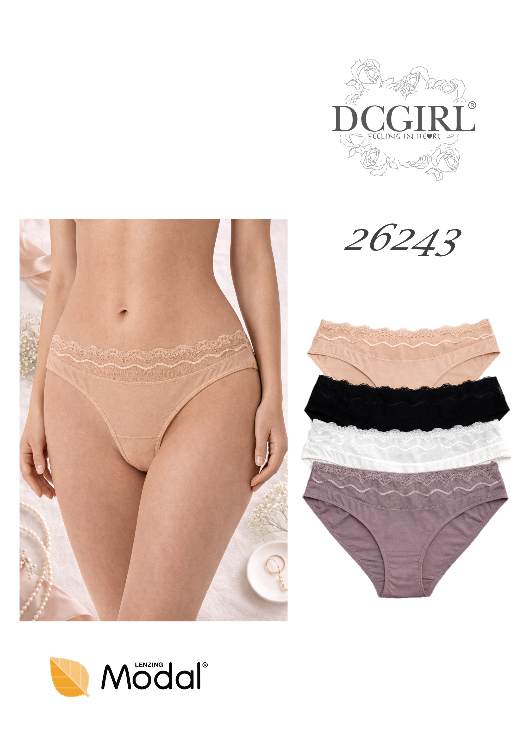 Жіночі трусики з ніжного, приємного для шкіри модалу. Мереживна деталь спереду. Упаковка з 12 шт. в різних кольорах та розмірах (S, M, L, XL). Склад: 94% модал, 6% еластан.