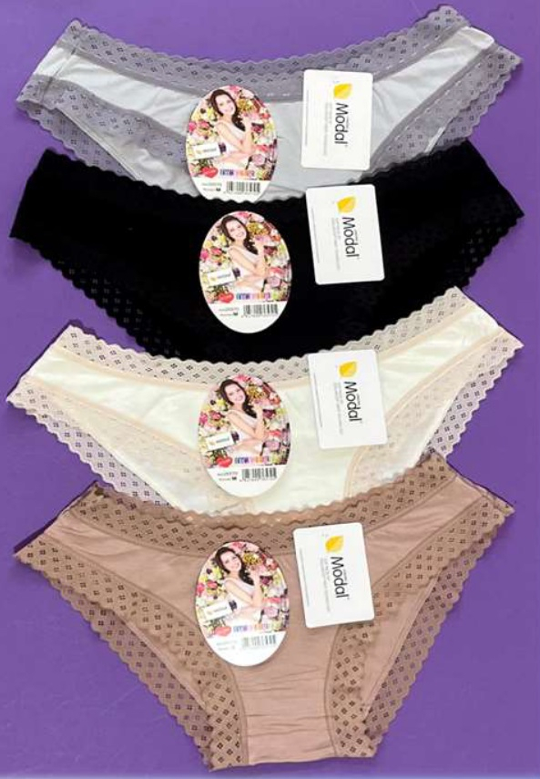 Жіночі труси з ніжного модалу. Вони ідеально прилягають до фігури. Упаковані в упаковки по 12 штук у різних візерунках та кольорах. Розміри в упаковці (S, M, L, XL). Склад: 94% модал, 6% еластан.