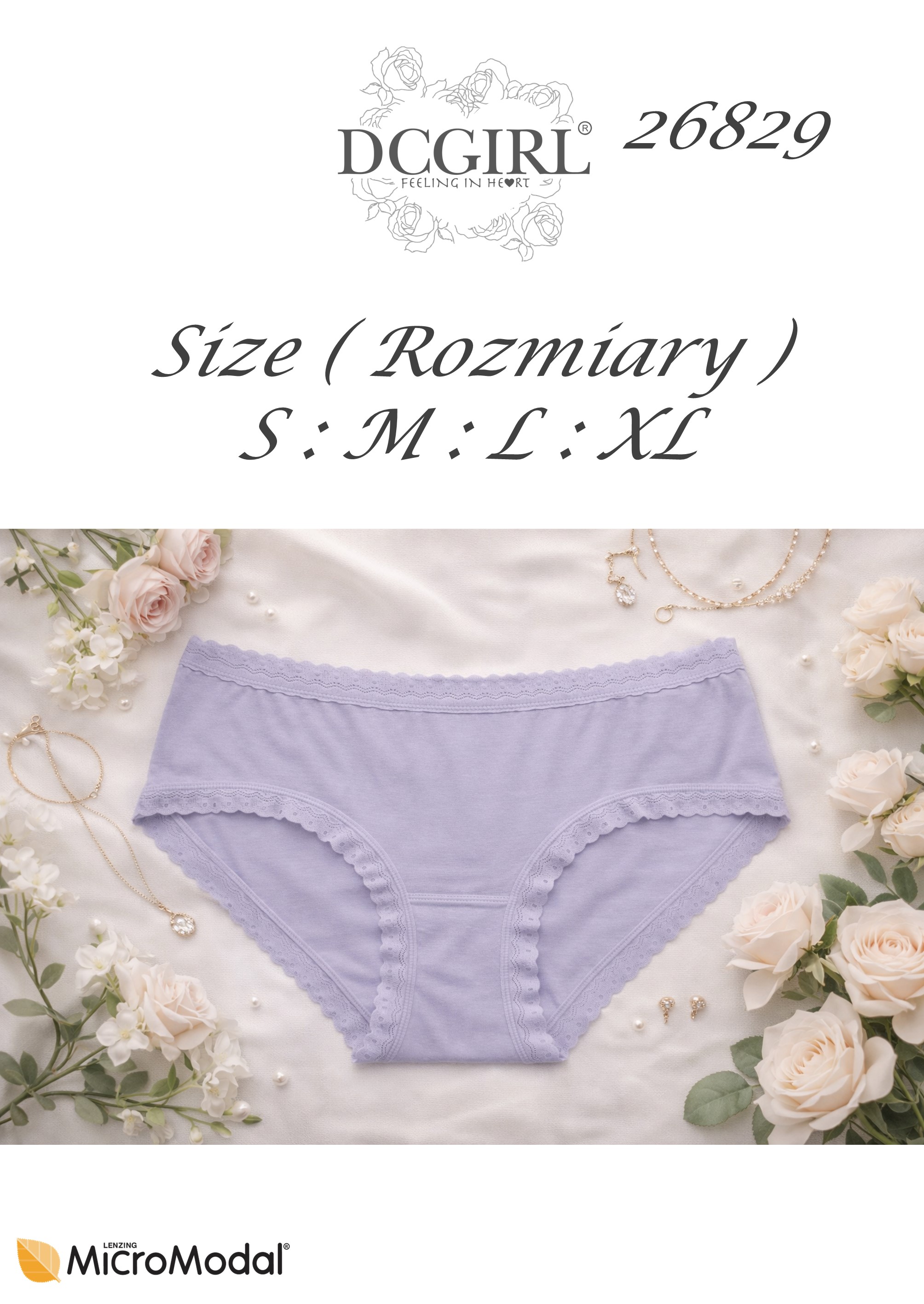 Жіночі трусики з ніжного модалу з красивим мереживом. Вони ідеально сидять по фігурі. Упаковані в упаковки по 12 штук у різних візерунках та кольорах. Розміри включені (S, M, L, XL). Склад: 94% модал, 6% еластан.