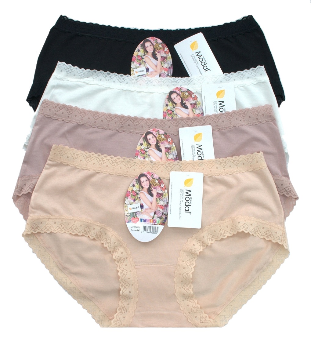 Жіночі трусики-бікіні. Виготовлені з м'якого, зручного матеріалу. Упаковані в упаковки по 12 штук у різних кольорах та розмірах (S, M, L, XL). Склад: 94% модал, 6% еластан.