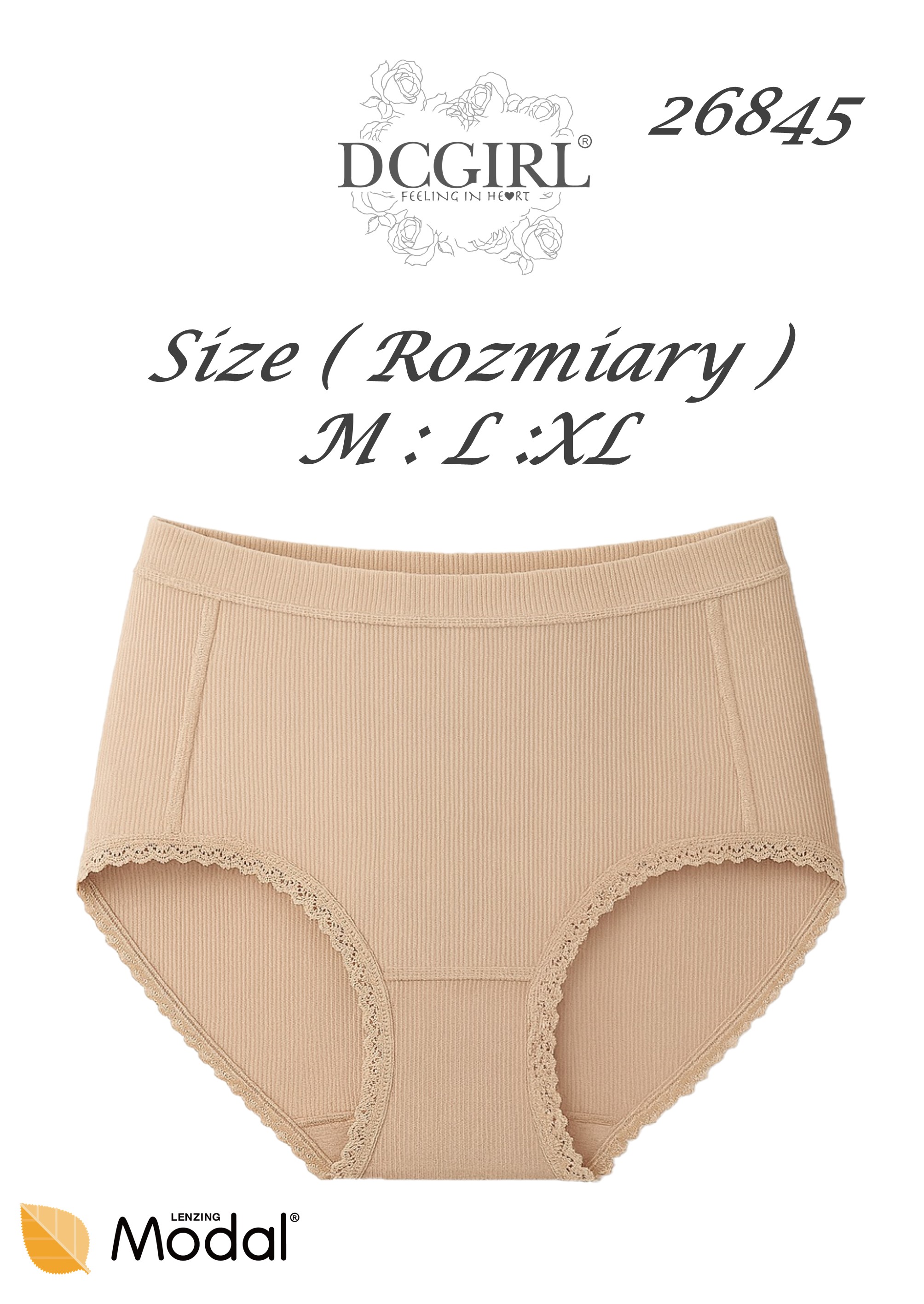 Жіночі труси-повні труси з високими бортами. Виготовлені з дуже м'якого матеріалу. Упаковані в упаковки по 12 штук у різних кольорах та розмірах (S, M, L, XL). Склад: 94% модал, 6% еластан.