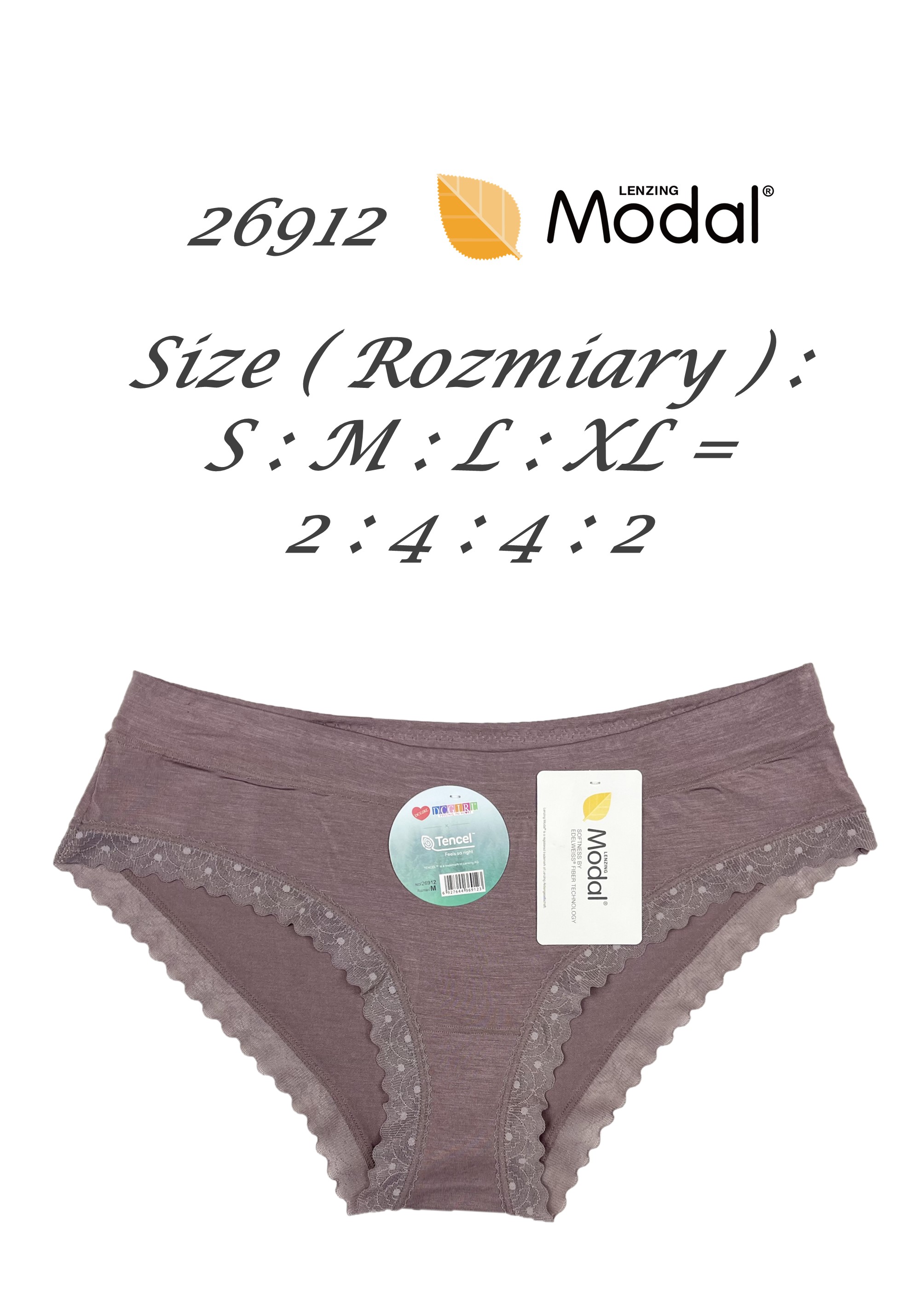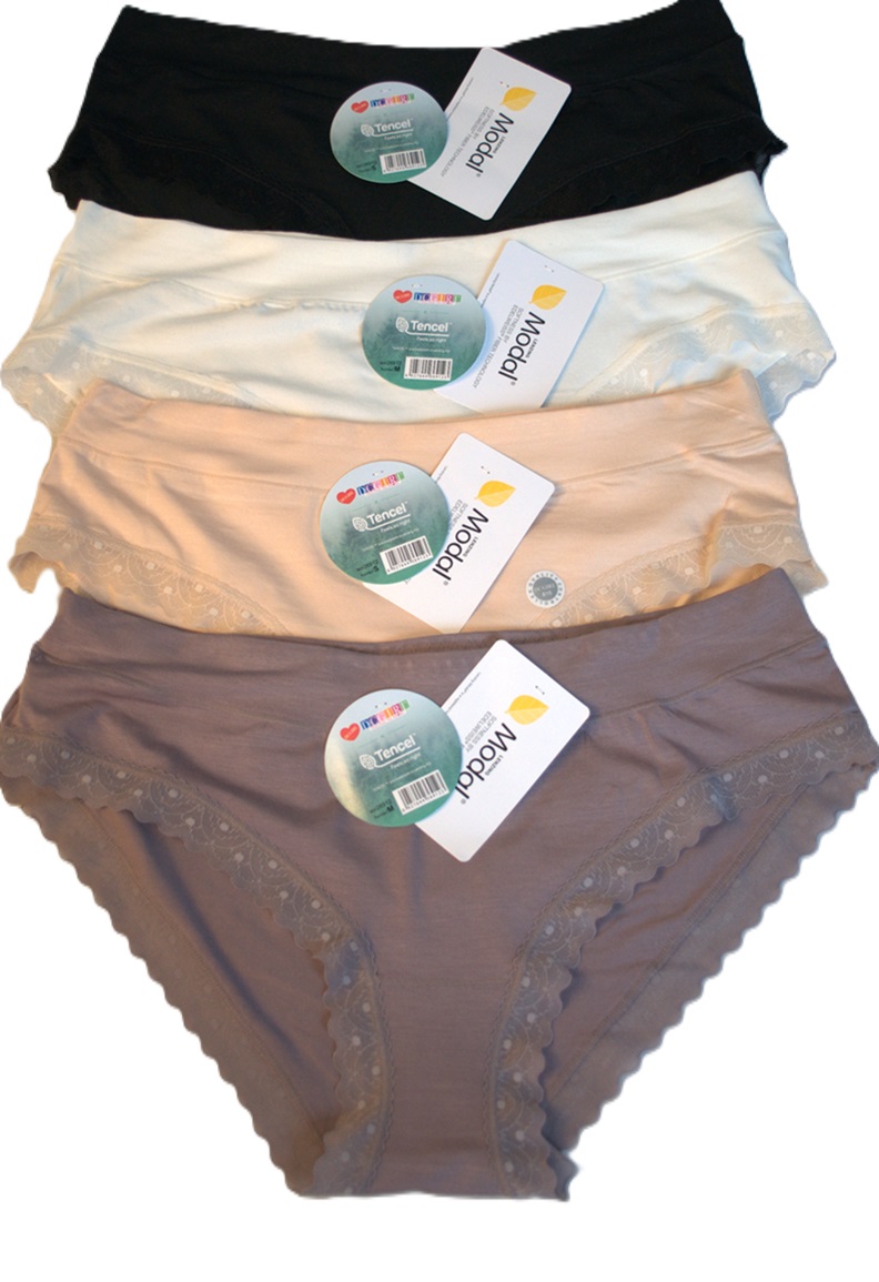 Жіночі труси з м'якого модалу. Ідеально прилягають до тіла. 12 штук в упаковці. Різні кольори та розміри (S, M, L, XL). Склад: 94% модал, 6% еластан.