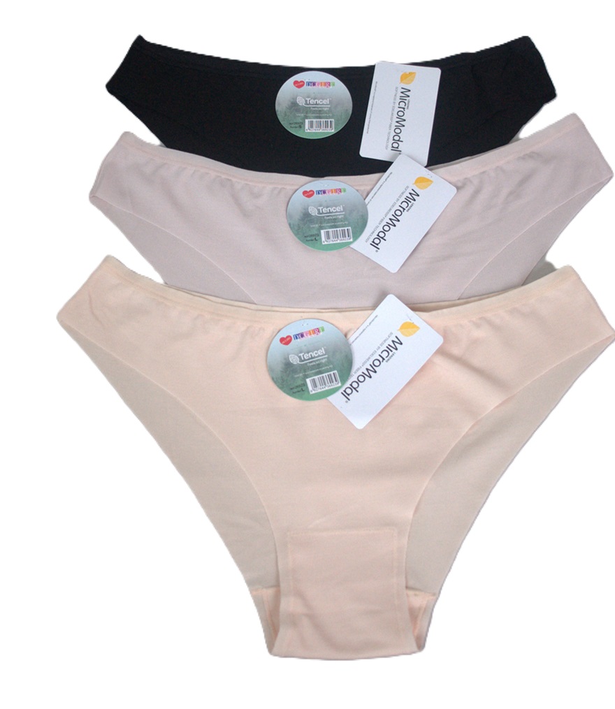 Жіночі труси з дуже м'якого матеріалу. Краї вирізані лазером. Упаковка з 12 штук. Склад: 89,5% модал, 10,5% спандекс.