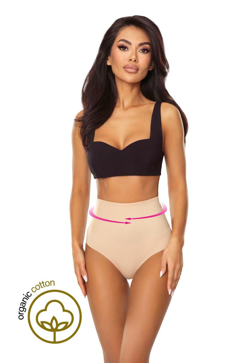 Трусики Eliza 7003 з лінійки Contour Line – це зручна коригуюча білизна, яка поєднує ефективне стягування фігури з повсякденним комфортом. Ця модель з високою талією розроблена для жінок, які хочуть непомітно скоригувати свій животик, талію та стегна, почуваючись комфортно протягом усього дня. Верхня частина трусиків виготовлена з еластичної, дуже моделюючої тканини, що забезпечує ідеальну посадку та допомагає приховати дрібні недоліки. Еластичний пояс стабілізує трусики та підвищує комфорт. Нижня частина виготовлена з м’якої бавовни з еластаном, що гарантує повітропроникність, м’якість та комфорт для щоденного носіння. Крім того, 100% бавовняна прокладка в промежині підвищує гігієну та комфорт. Плоскі шви та ретельно продуманий крій роблять трусики Eliza 7003 чудовим вибором для жінок, які шукають гладкі, коригуючі трусики з високою талією для щоденного носіння. Склад: Верхня частина: 57% поліамід, 43% еластан Нижня частина: 85% бавовна, 15% еластан