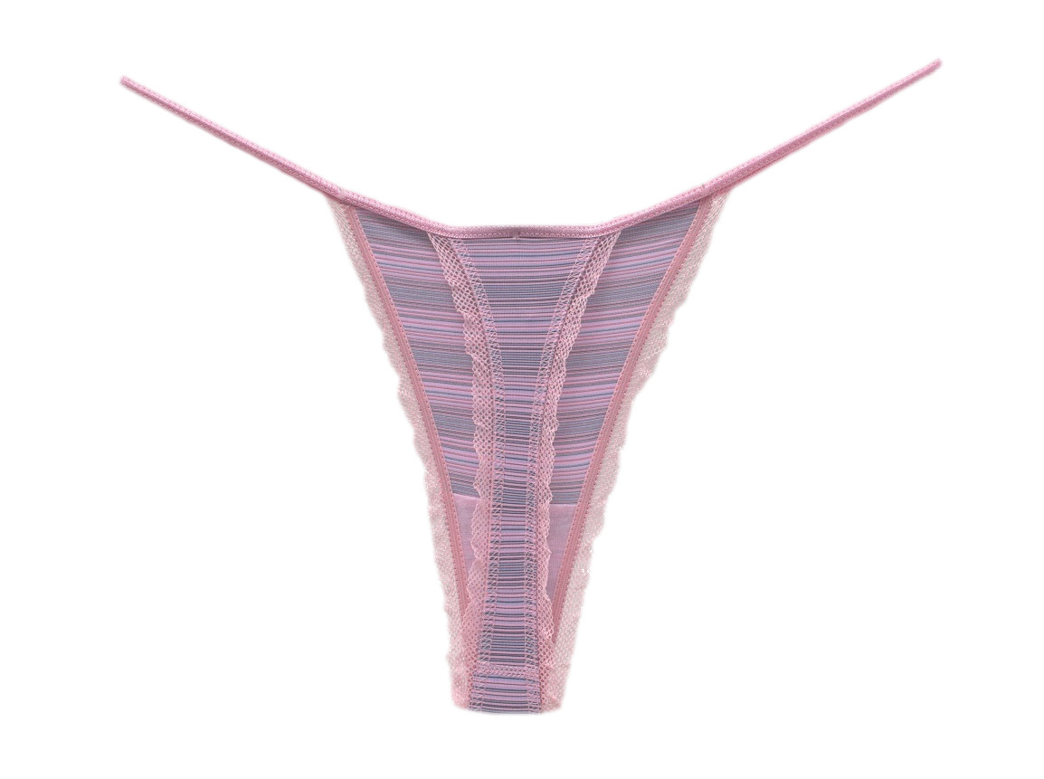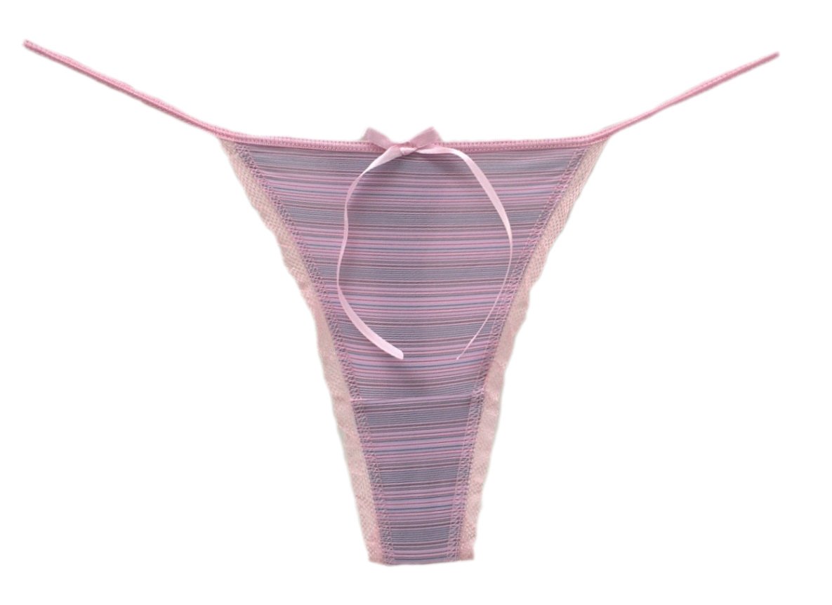 Чуттєві стрінги з м'якої мікрофібри з візерунком. Бокові частини виготовлені з еластичної, не стискаючої гумки. Передня частина прикрашена ніжним атласним бантом, а краї оброблені ажурними рюшами.